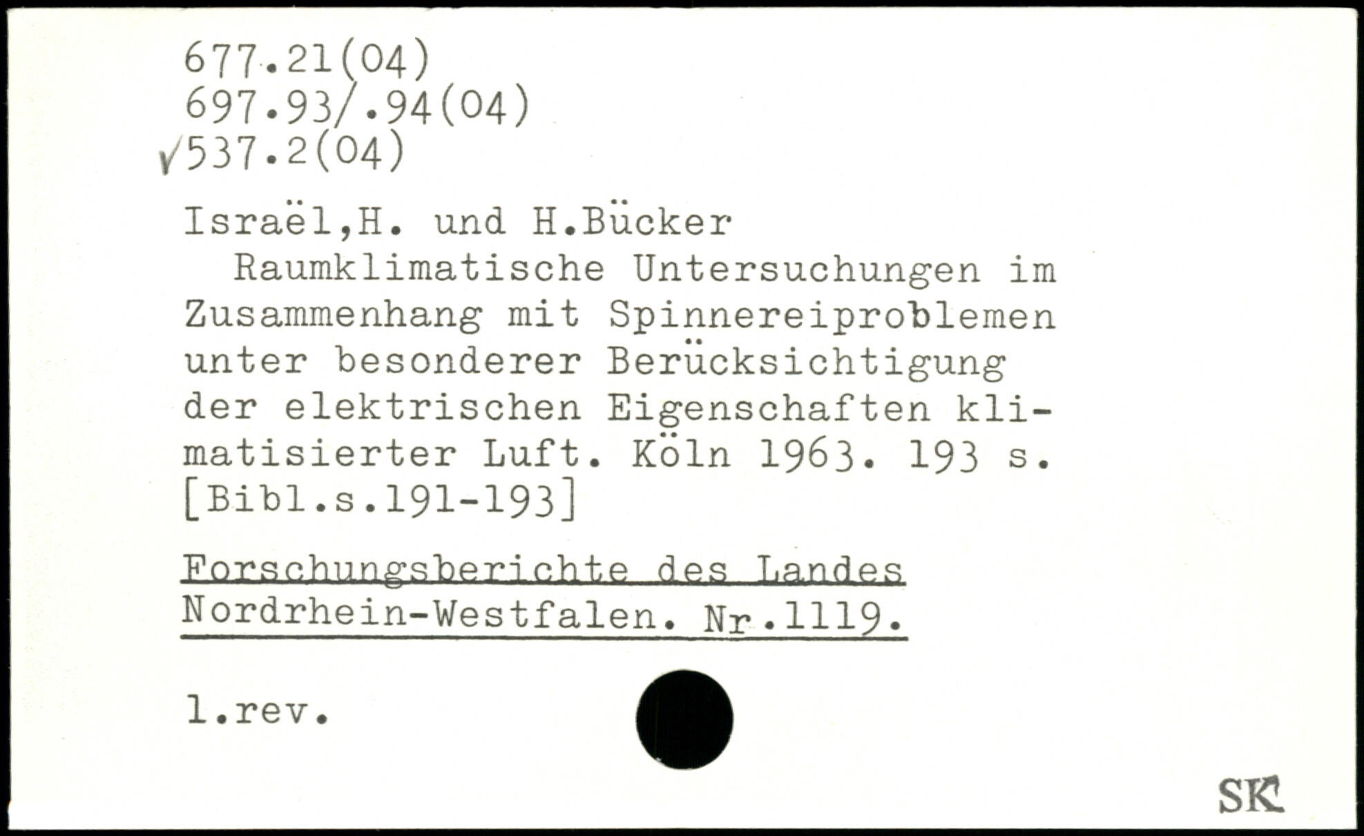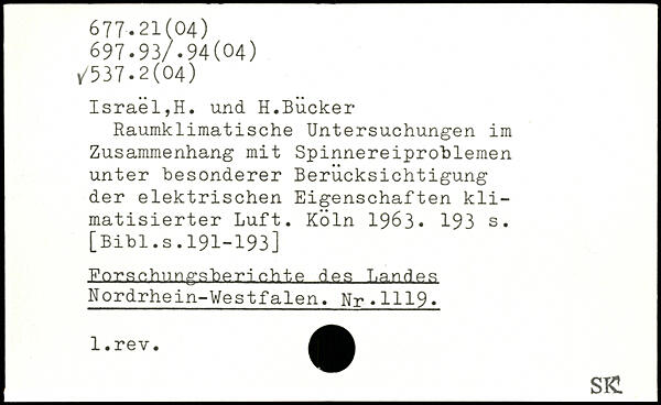 Raumklimatische Untersuchungen im Zusammenhang mit Spinnereiproblemen unter besonderer Berücksichtigung der elektrischen Eigenschaften klimatisierter Luft. Köln 19Ö3.