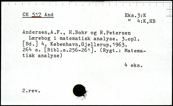 Andersen,A.F., H.Bohr og R.Petersen Lærebog i matematisk analyse. 3,opl. [Bd.] 4.