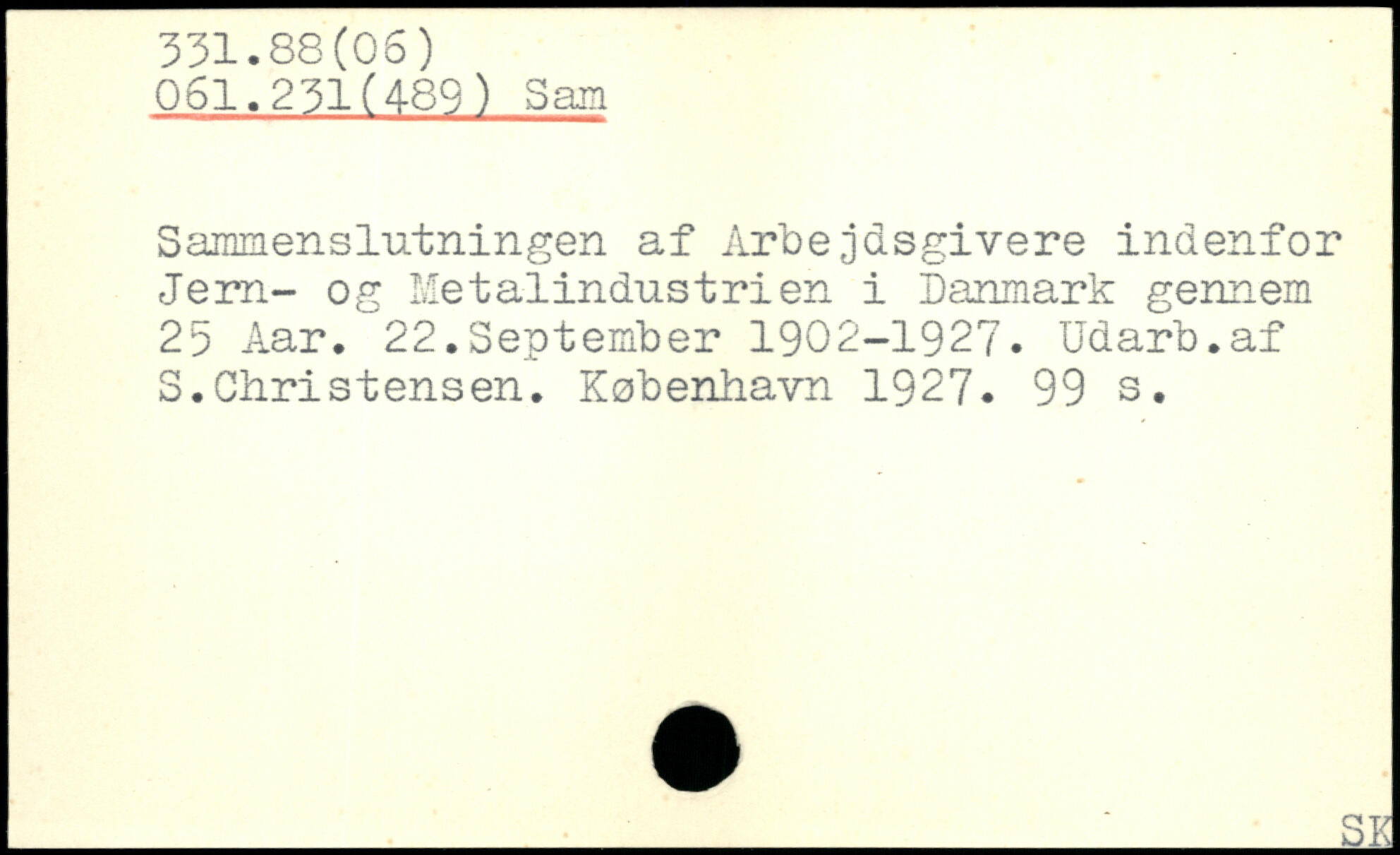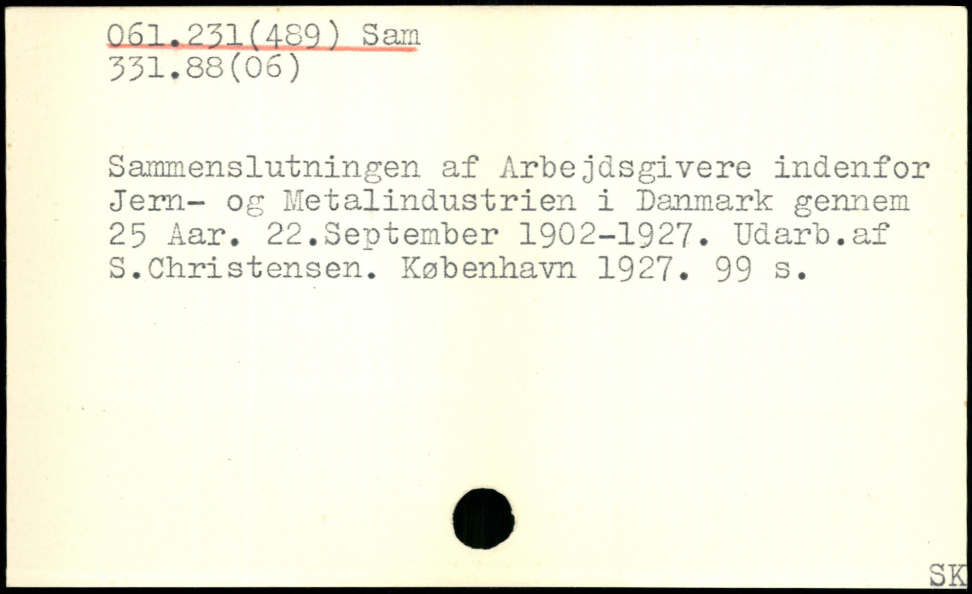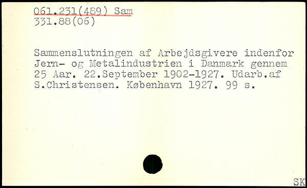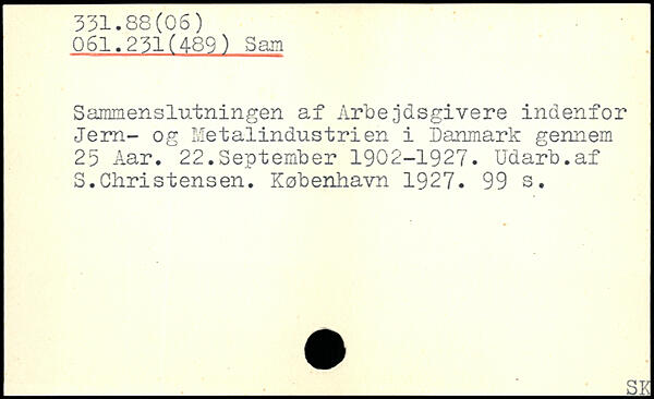 Sammenslutningen af Arbejdsgivere indenfor Jern- og Metalindustrien i Danmark gennem 25 Aar. 22.September 1902-1927. Udarb.af S.Christensen.