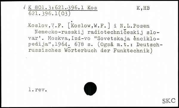.Koslov,V.F. [KosloWjW.F.] i N.L.Posen Nemecko-russkij radiotechniceskij slo-var'. Moskva,Izd-vo "Sovetskaja énciklo-pedija",1964.
