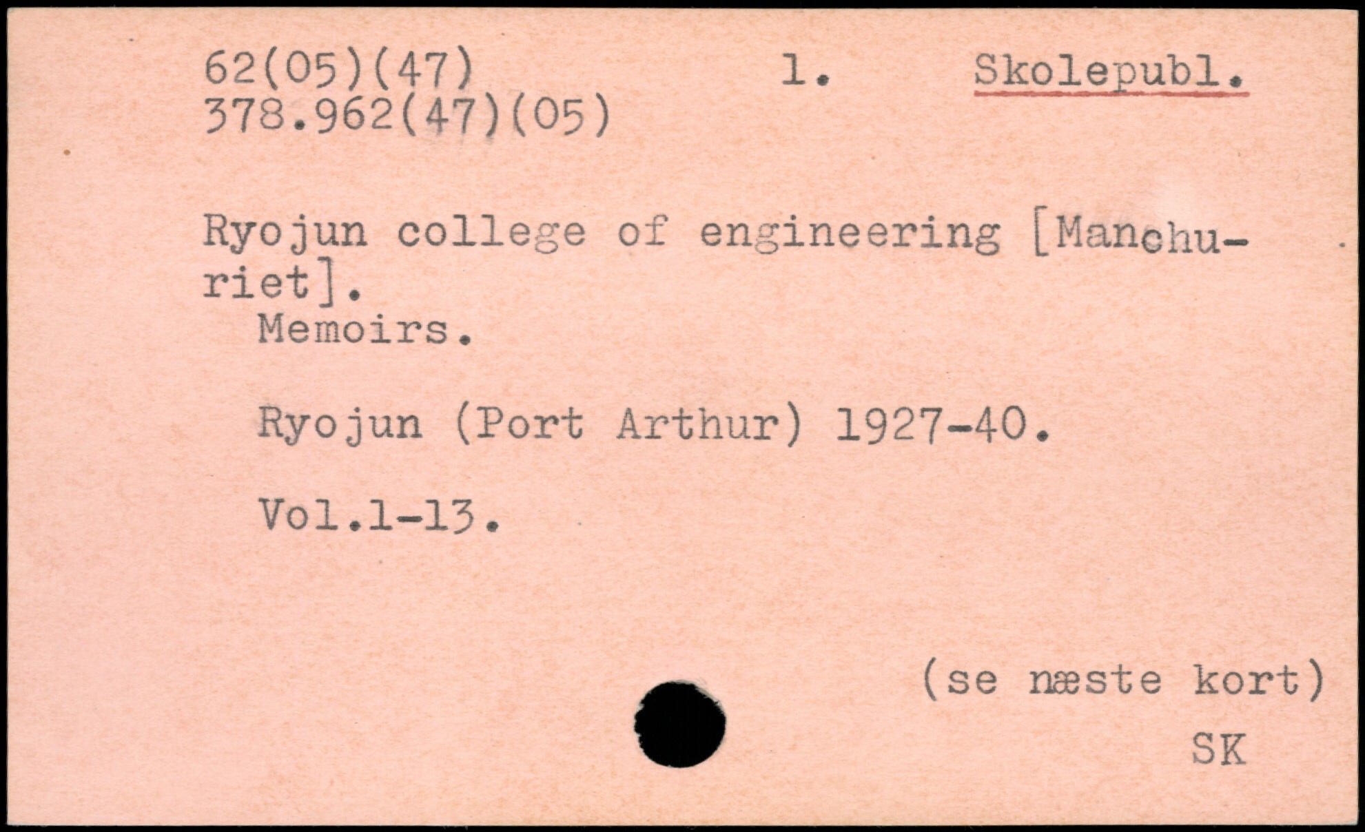 Ryojun college of engineering [Manehu-riet]. Memoirs. Ryojun (Port Arthur) 1927-40.