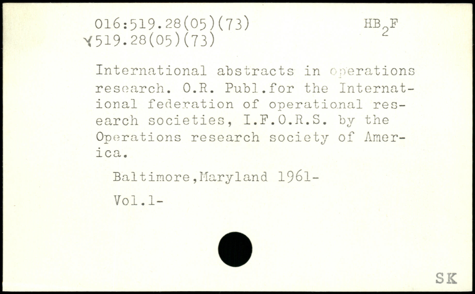 International abstracts in operations research. O.R. Publ.for the International federation of operational research societies, I.F.O.R.S. by the Operations research society of America. Baltimore,Maryland 19&1-Vol.l-