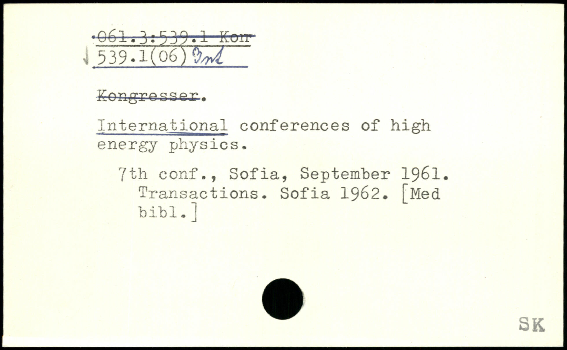 International conferences of high energy physics. 7th conf., Sofia, September 1961. Transactions. Sofia 1962. [Med bibl.]