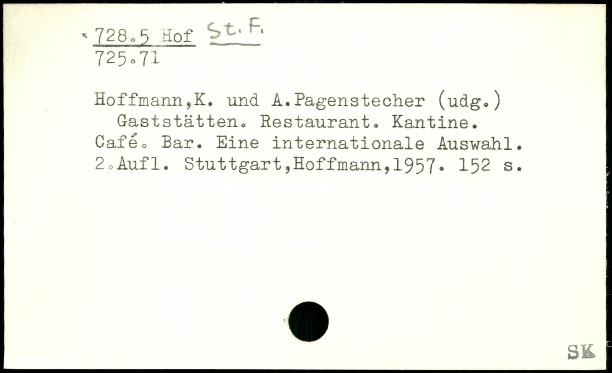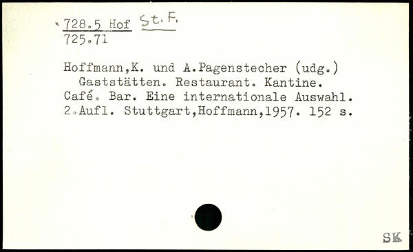 Hoffmann,K. und A.Pagenstecher (udg.) j Gaststätten. Restaurant. Kantine. \ Cafe. Bar. Eine internationale Auswahl.