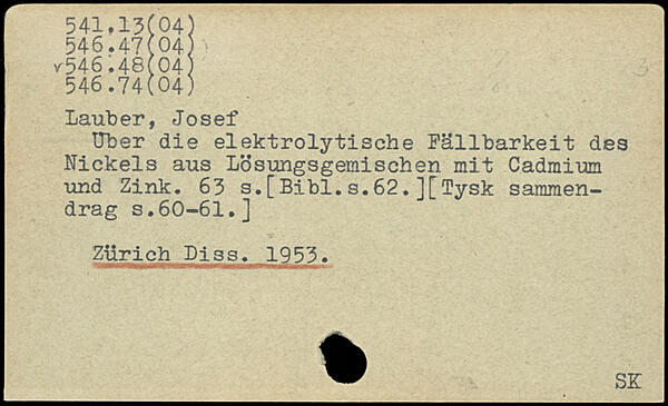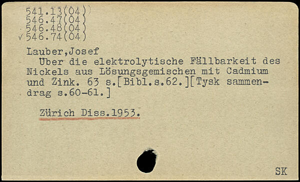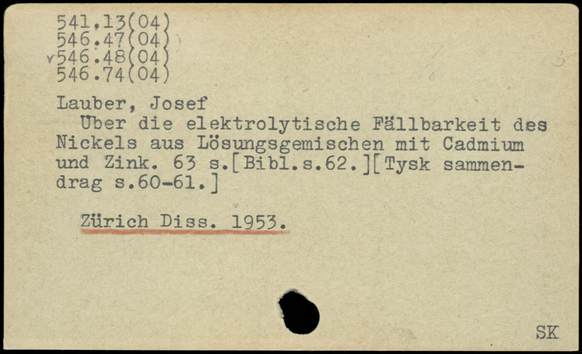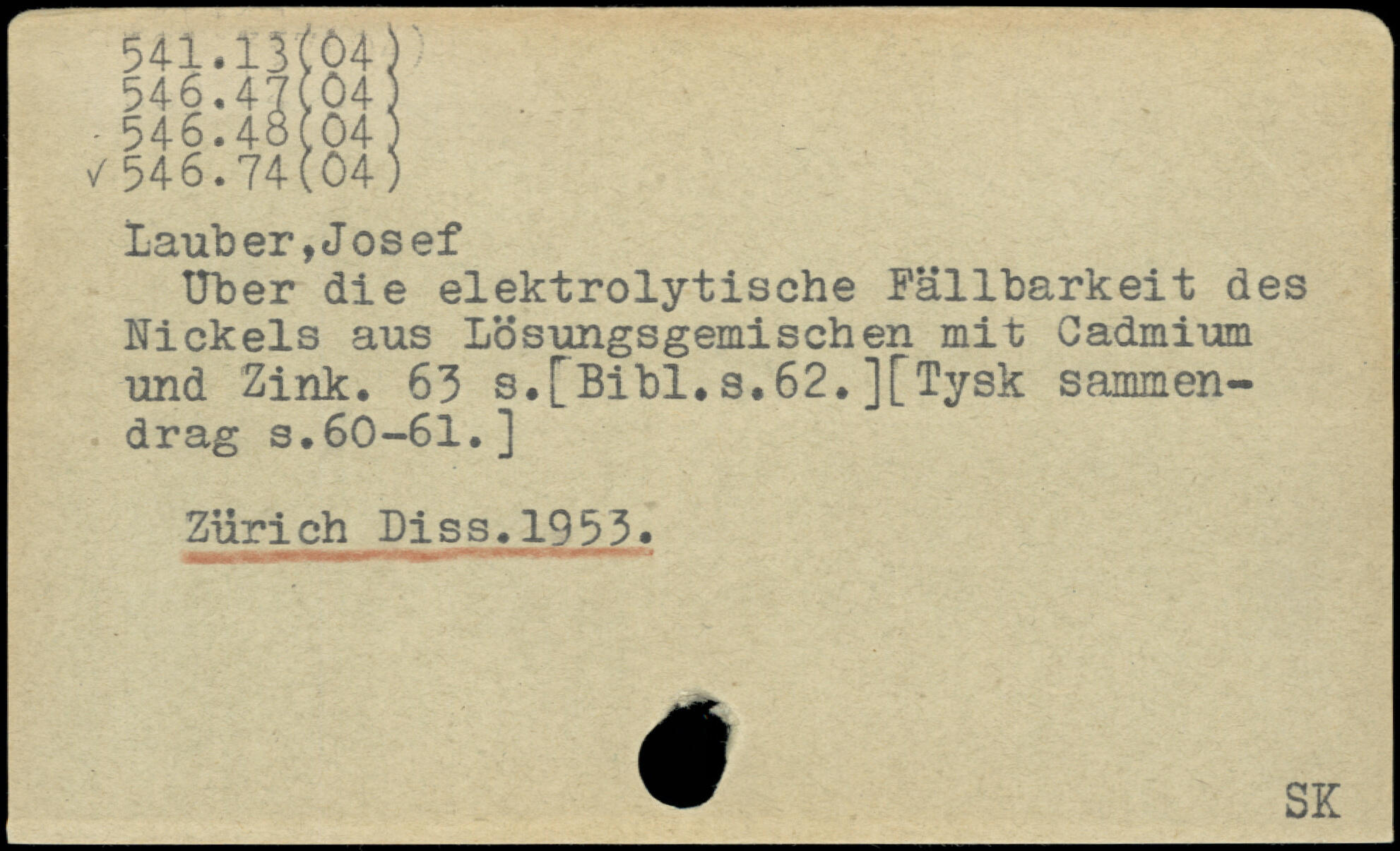 Lauber, Josef Über die elektrolytische Fällbarkeit des Nickels aus Lösungsgemischen mit Cadmium und Zink.