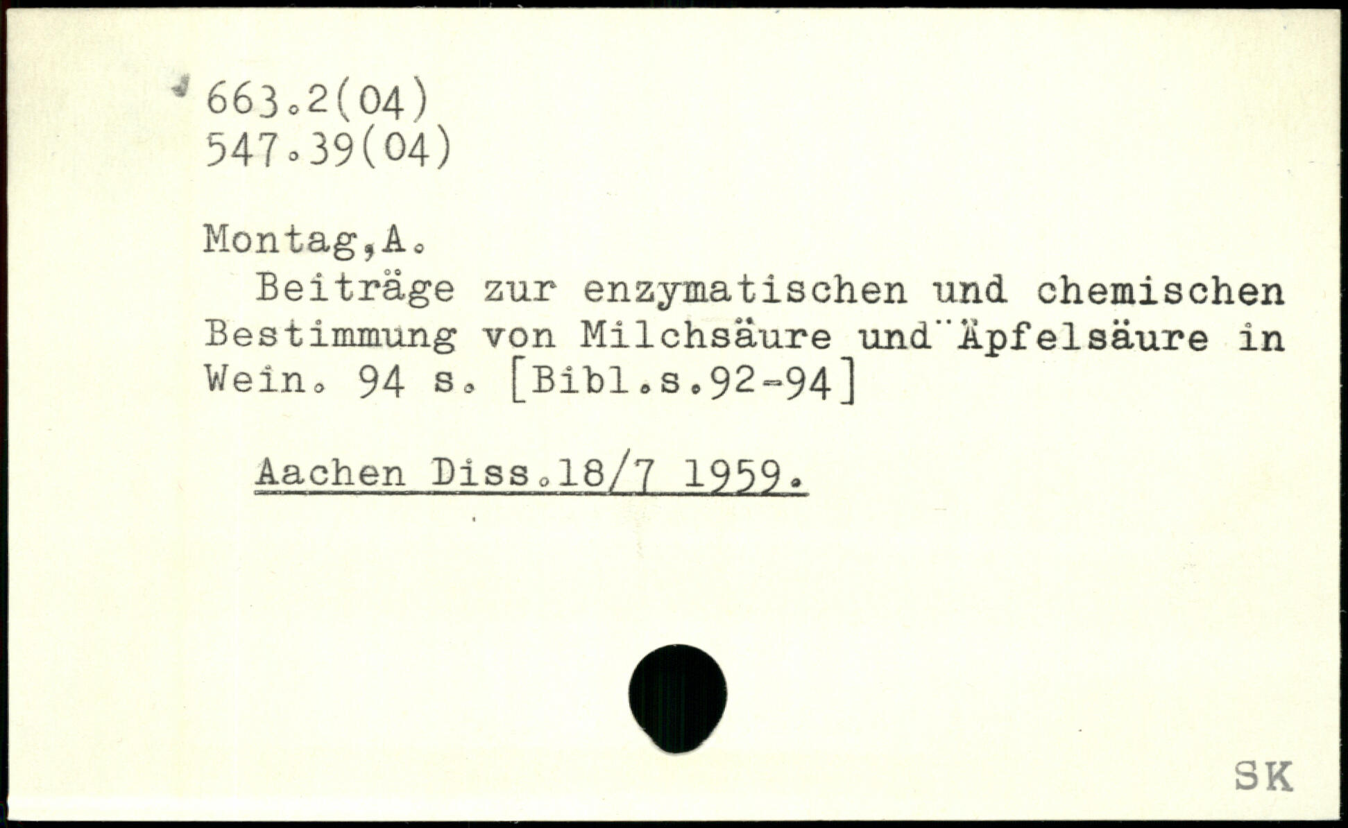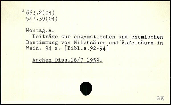 Beiträge zur enzymatischen und chemischen Bestimmung von Milchsäure und"Apfelsäure in Wein