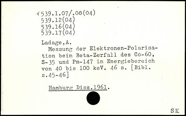 Messung der Elektronen-Polarisa-tion beim Beta-Zerfall des Co-60, S-35 und Pm-147 im Energiebereich von 40 bis 100 keV.