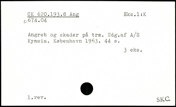 Angreb og skader på træ. Udg.af å/S Kymeia. København 19^3.
