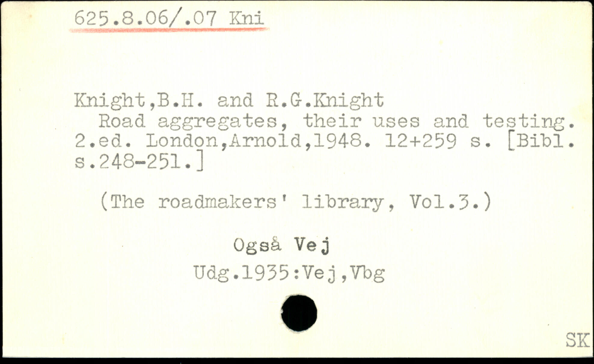 Knight,B.H. and E. G-. Knight Hoad aggregates, their uses and testing.