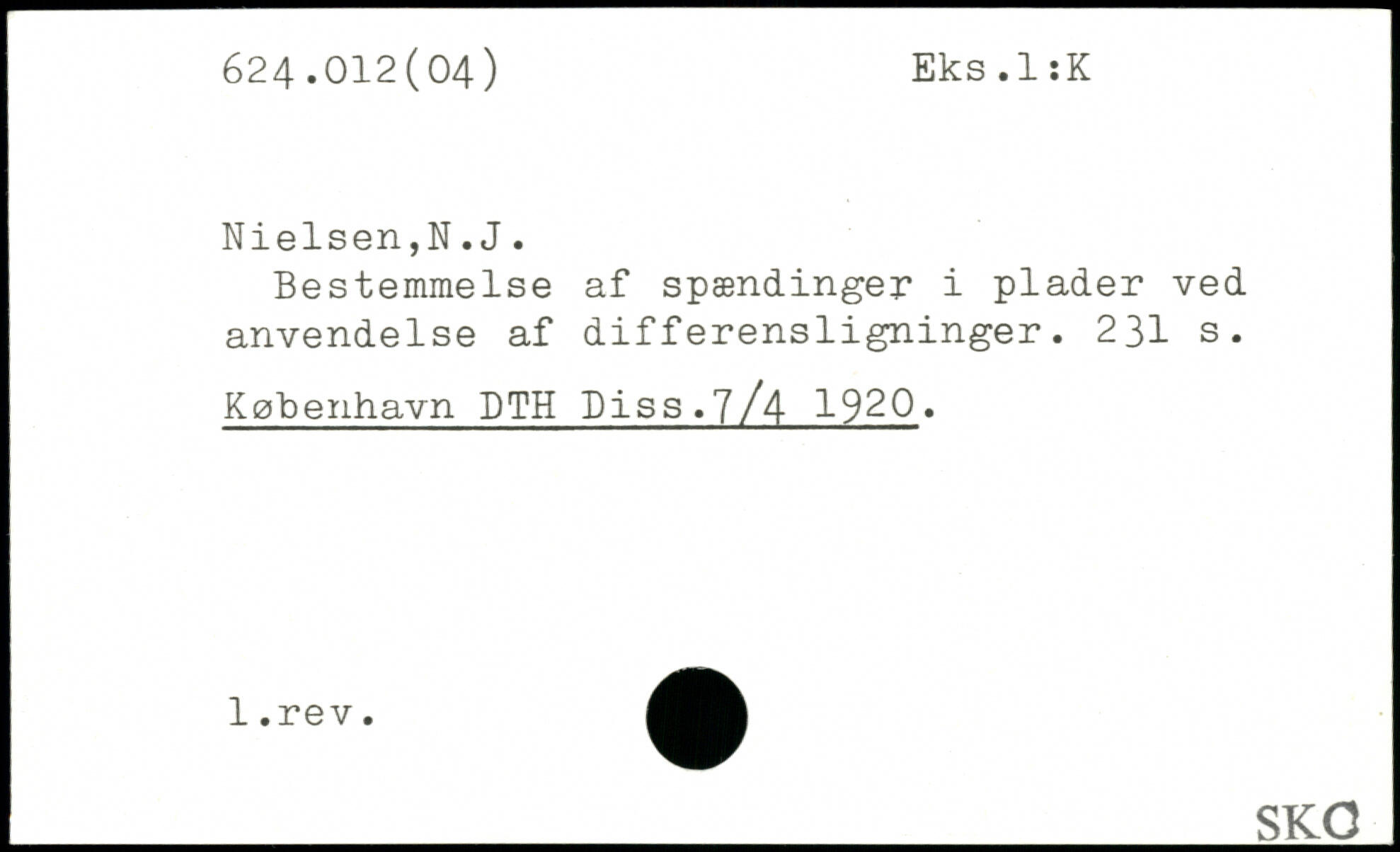 Bestemmelse af spændinger i plader ved anvendelse af differensligninger.