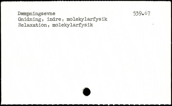 Dæmpn ings evne 53 9.6 7 Gnidning, indre, molekylarfysik Relaxation, molekylarfysik