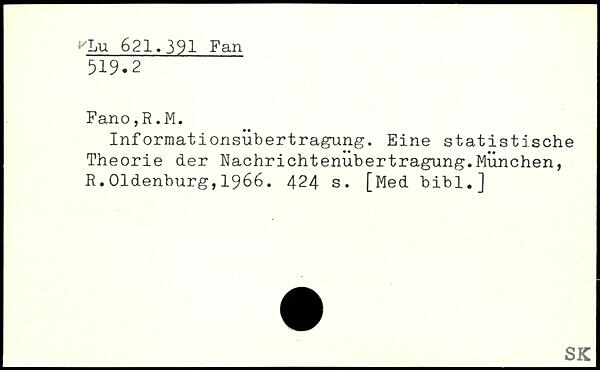 Informationsiibertragung. Eine statistische Theorie der Nachrichtenübertragung.München, R.Oldenburg,1966.