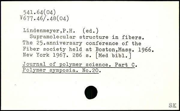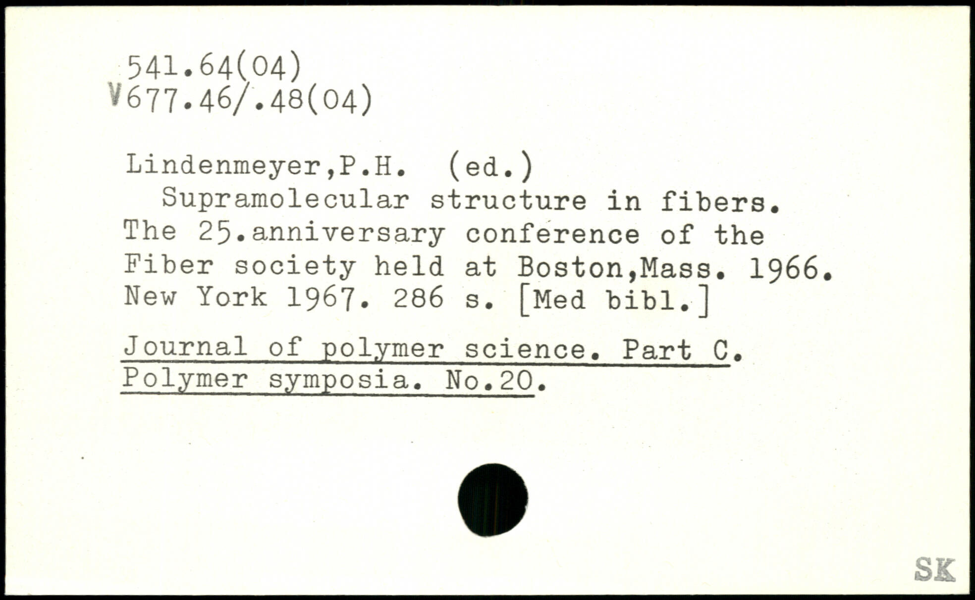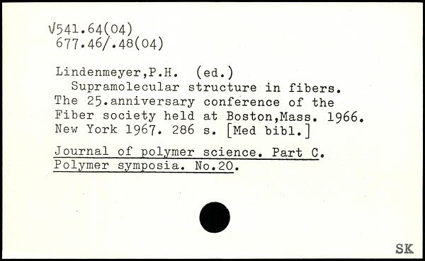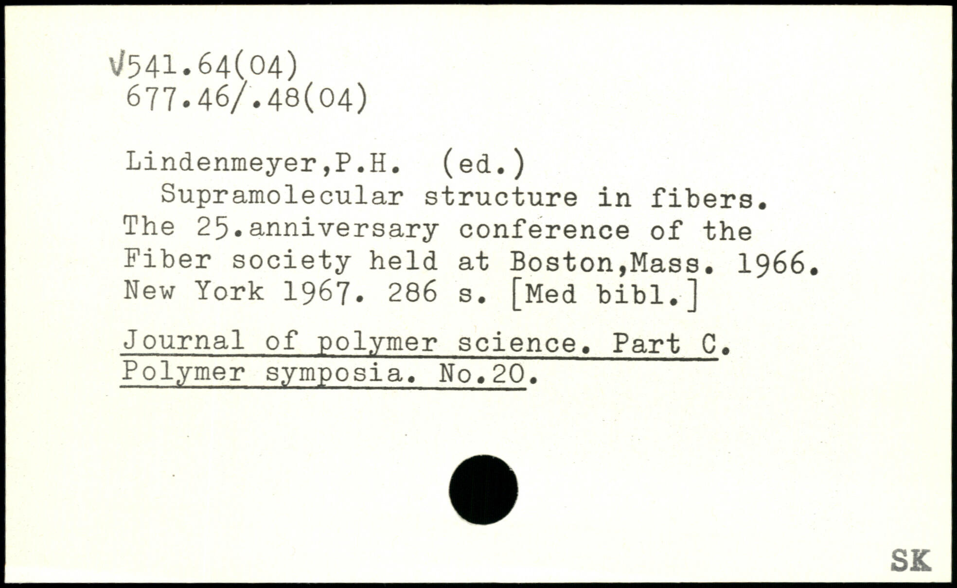 Supramolecular structure in fibers. The 25.anniversary conference of the Fiber society held at Boston,Mass. 1966.
