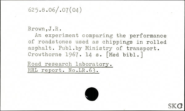 An experiment comparing the performance of roadstones used as chippings in rolled asphalt.