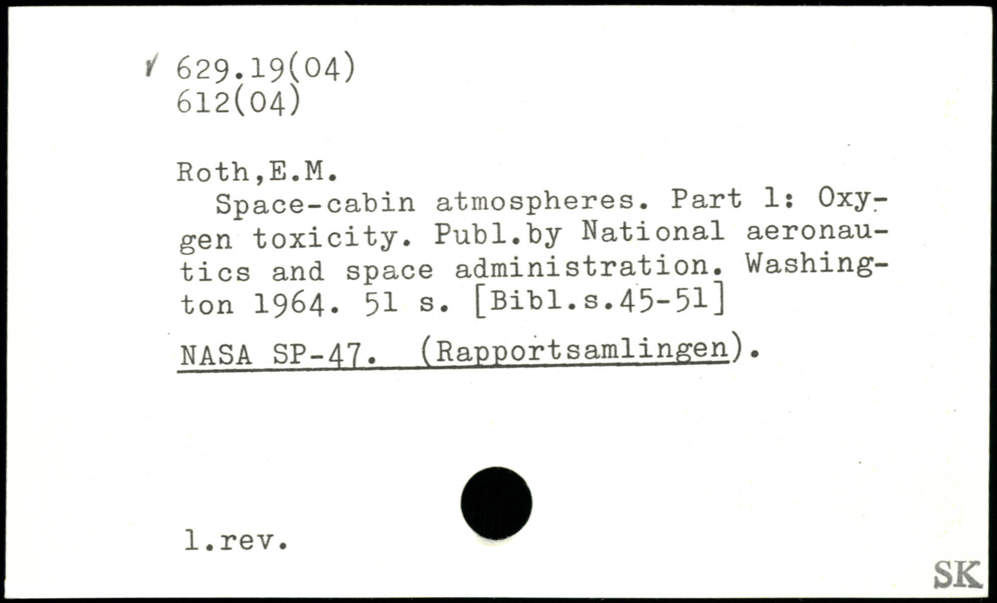 Space-cabin atmospheres. Part 1: Oxygen toxicity.