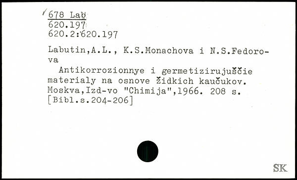 Antikorrozionnye i germetizirujuScie materialy na osnove zidkich kaucukov. Moskva,Izd-vo "Chimija",1966.