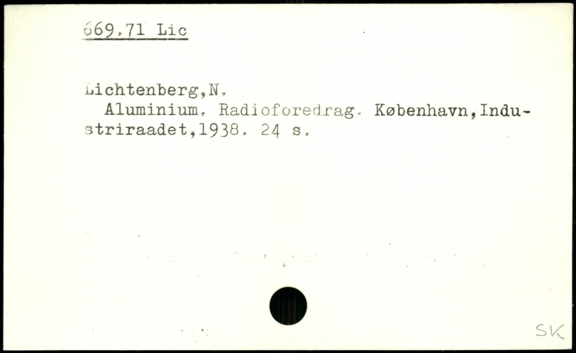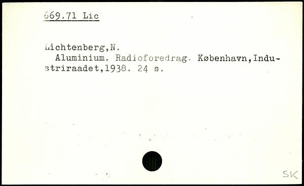 Aluminium, Radioforedrag- København,Indu-striraadet,1938. 24 s.