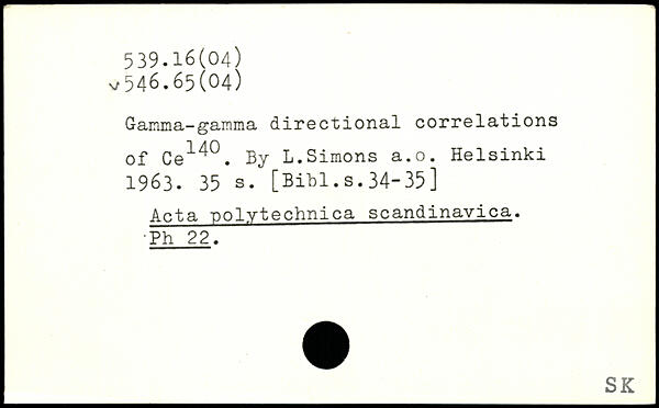 Ganina-gamma directional correlations of Ce1^0. By L.Simons a.o.