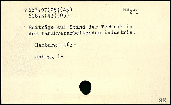 Beiträge zum Stand der Technik in der tabakverarbeitenden industrie-