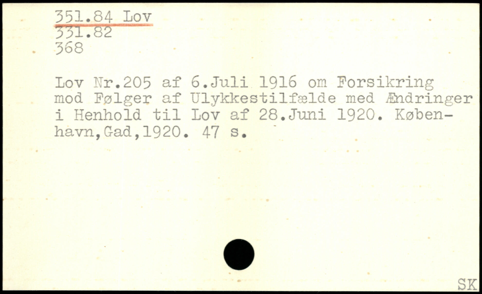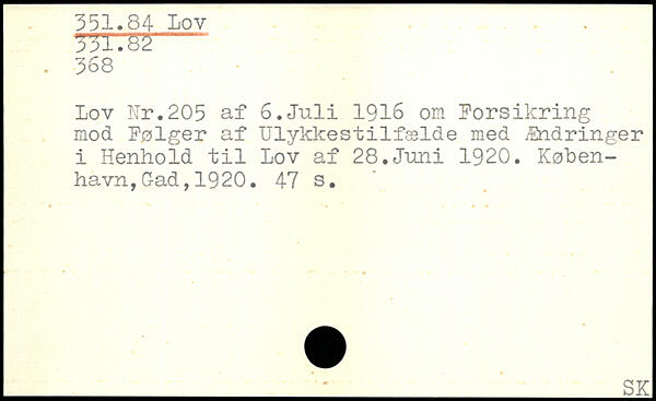 Lov Nr.205 af 6.Juli 1916 om Forsikring mod Følger af Ulykkestilfælde med Ændringer i Henhold til Lov af 28.Juni 1920.