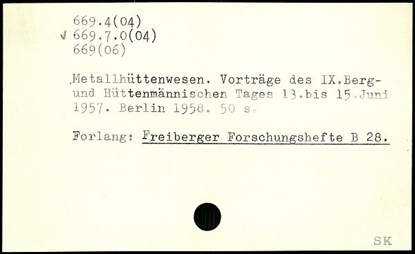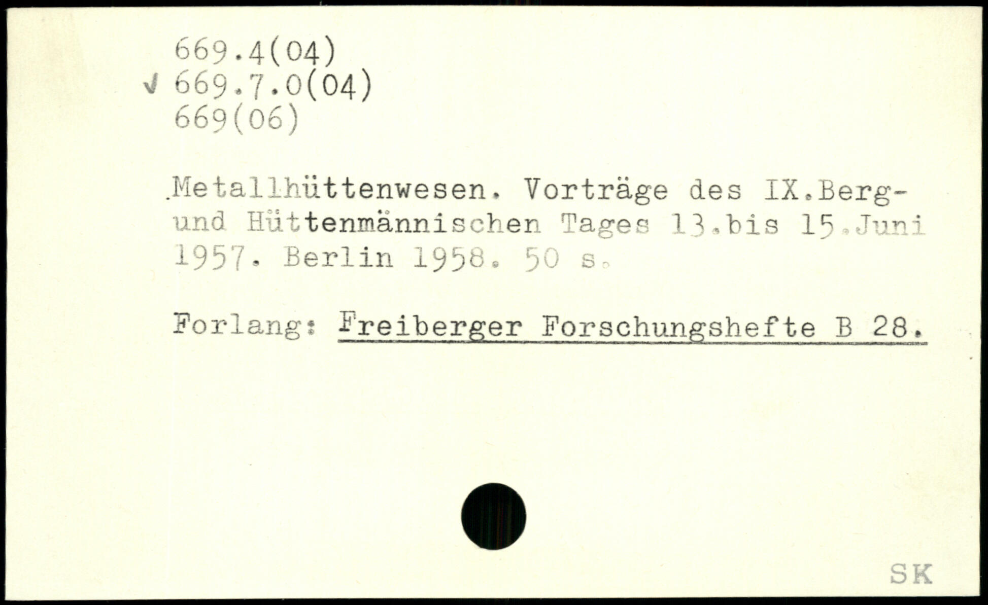 .Metallhüttenwesen. Vorträge des IX.Berg-und Hüttenmännischen Tages 11.bis 16 Juni 1957-