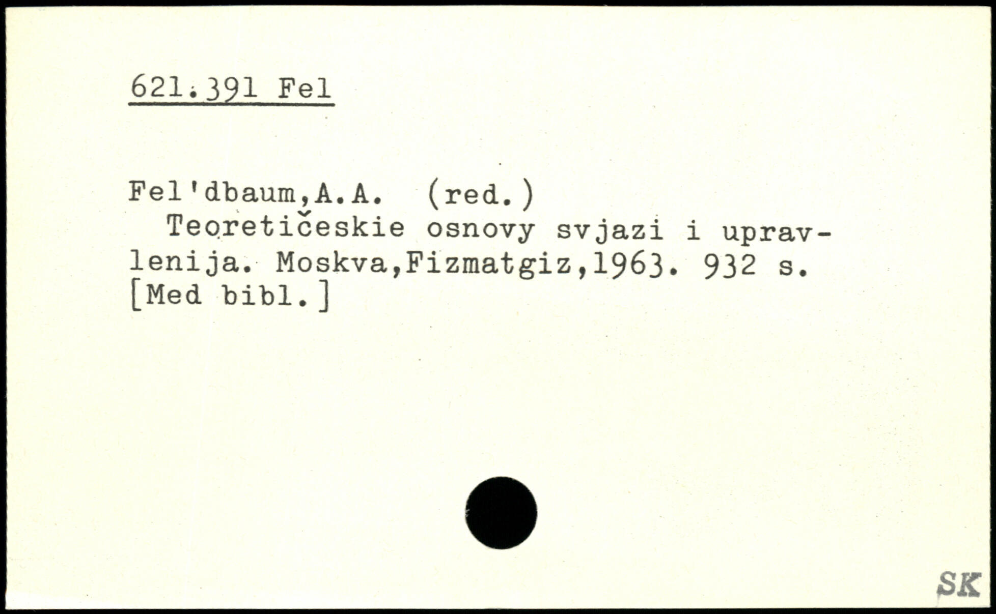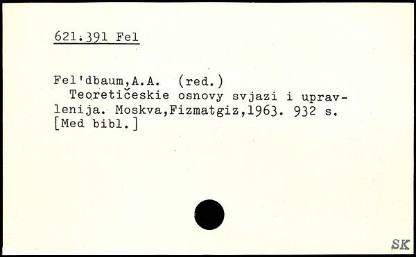 Fel’dbaum,A.A. (red.) Teoreticeskie osnovy svjazi i uprav-lenija.