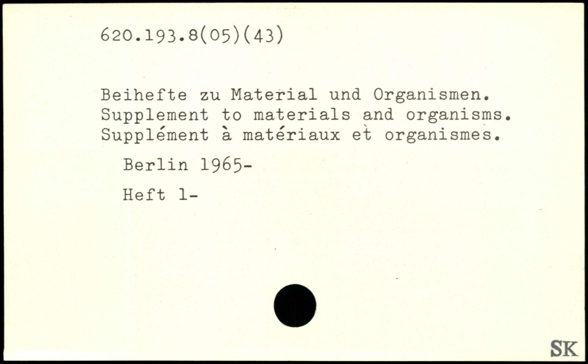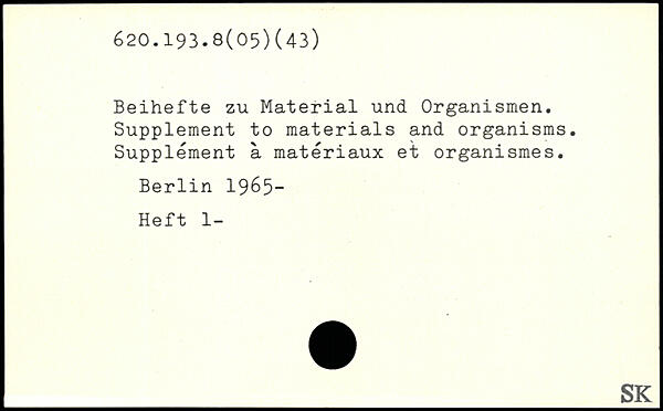 Beihefte zu Material und Organismen. Supplément to materials and organisms. Supplément a matériaux et organismes.