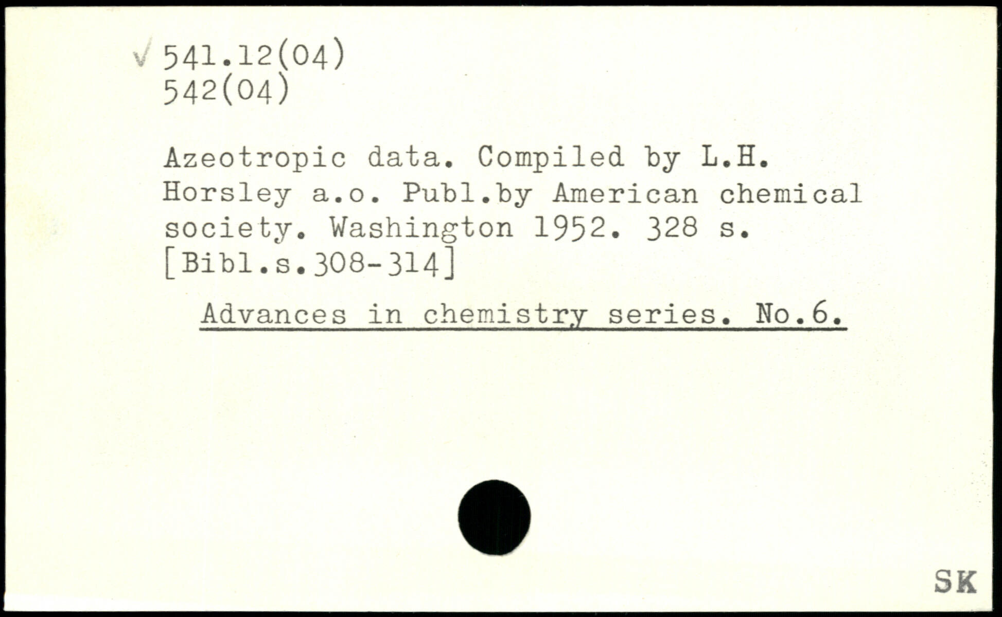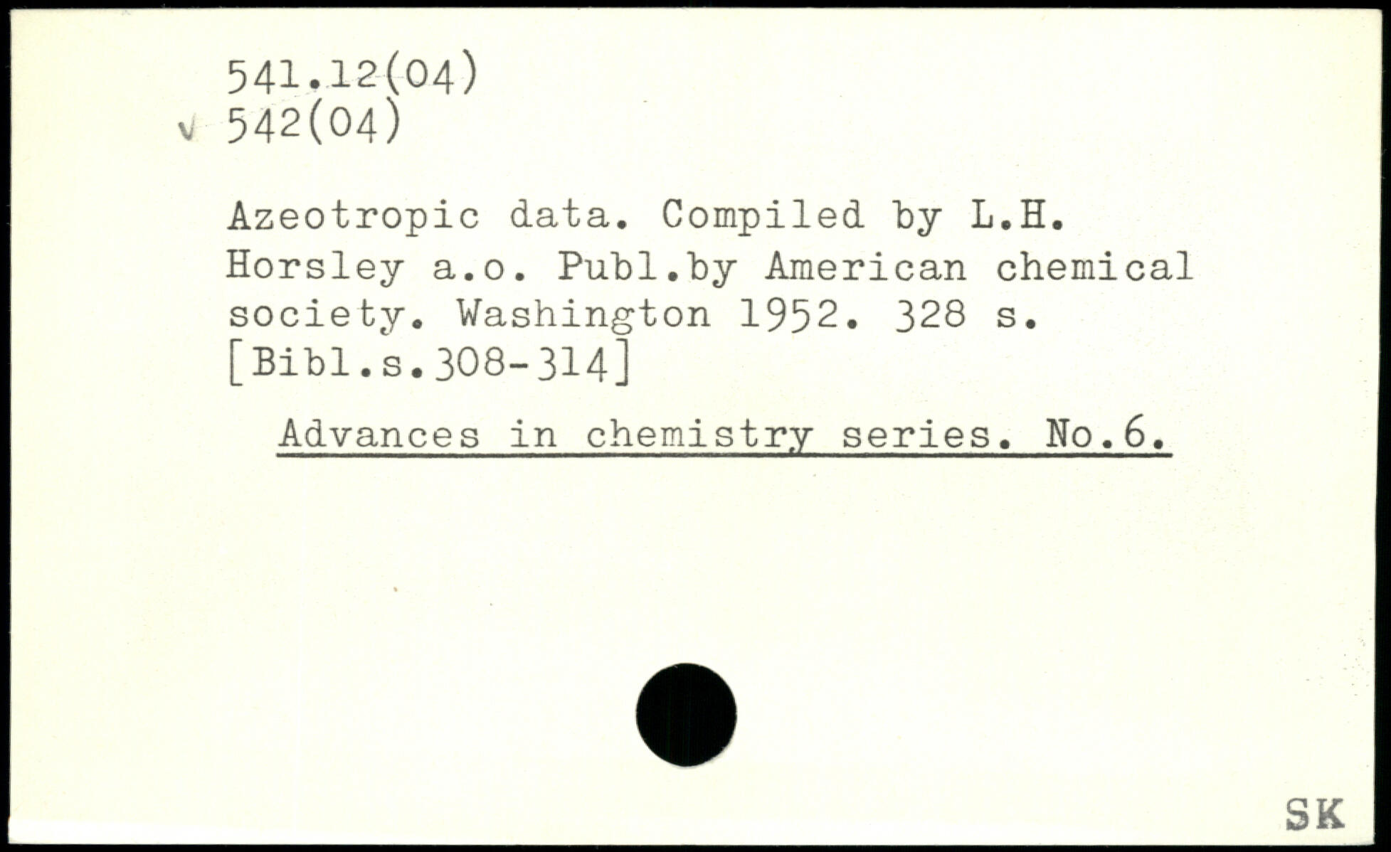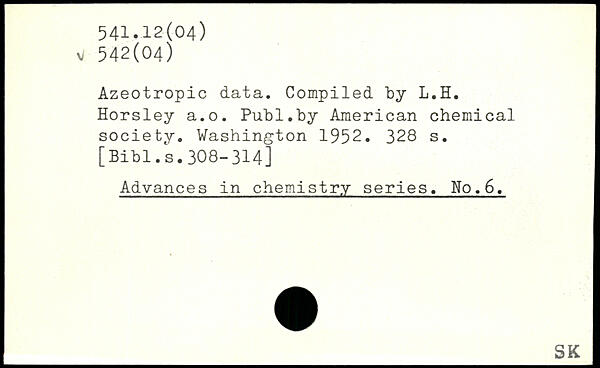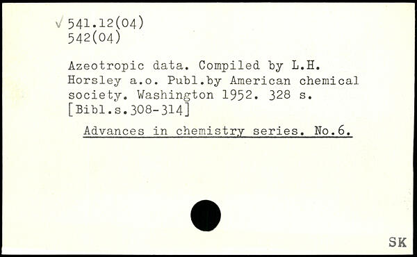 Azeotropic data. Compiled by L.H. Horsley a.o.