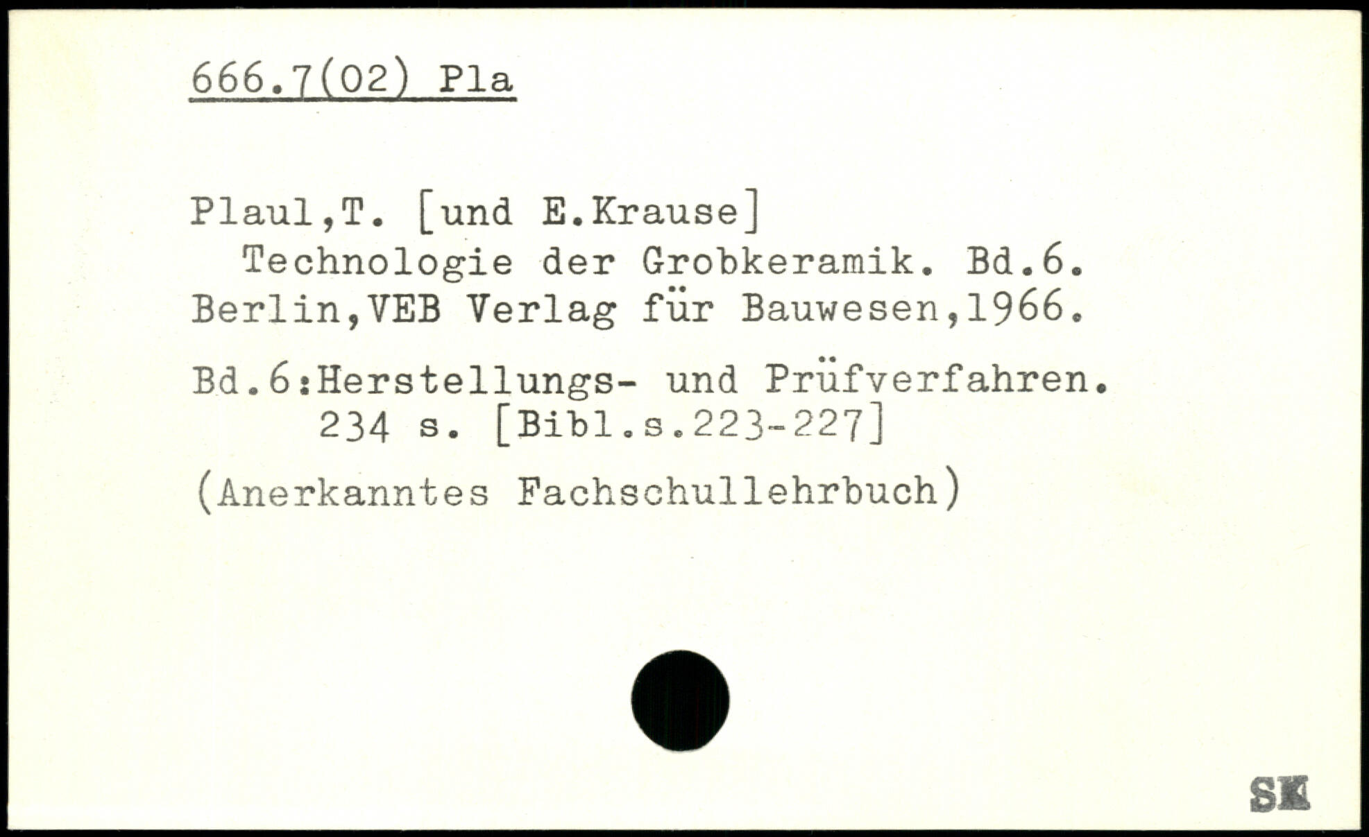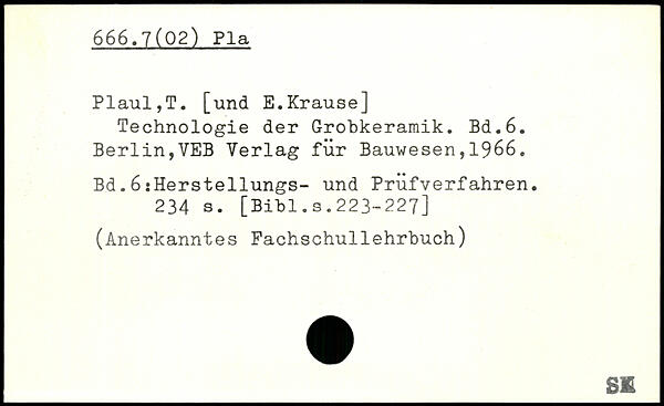 Plaul,T. [und E.Krause] Technologie der Grobkeramik.