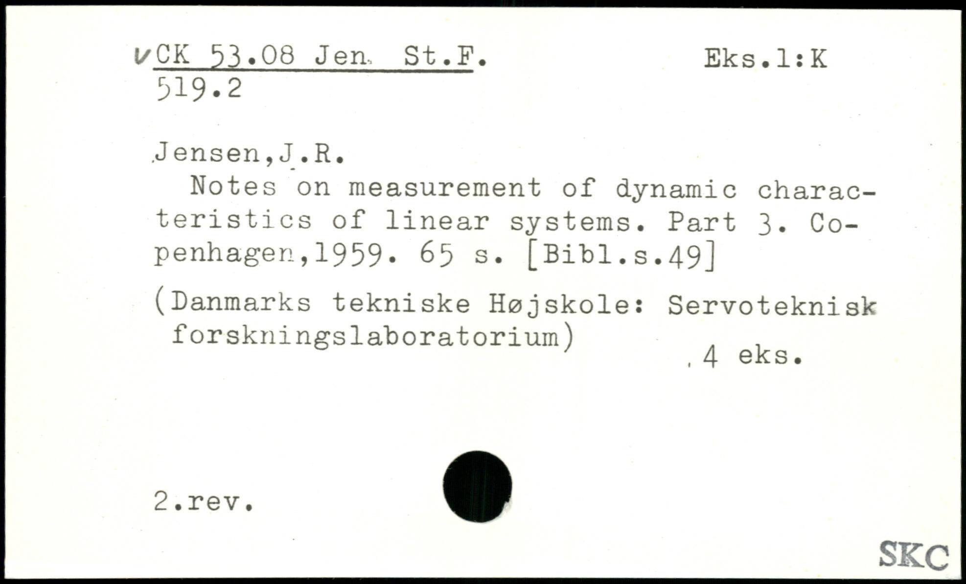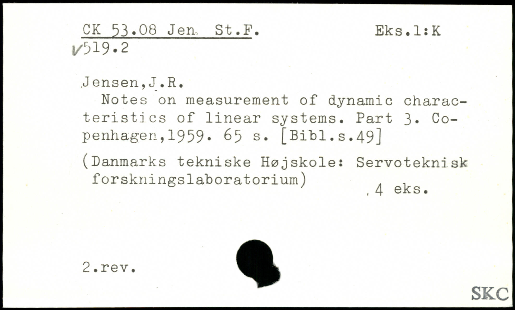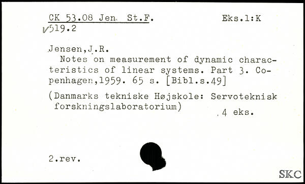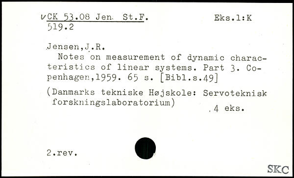 .Jensen, J.R. Notes on measurement of dynamic characteristics of linear systems. Part 3. Copenhagen , 1959.