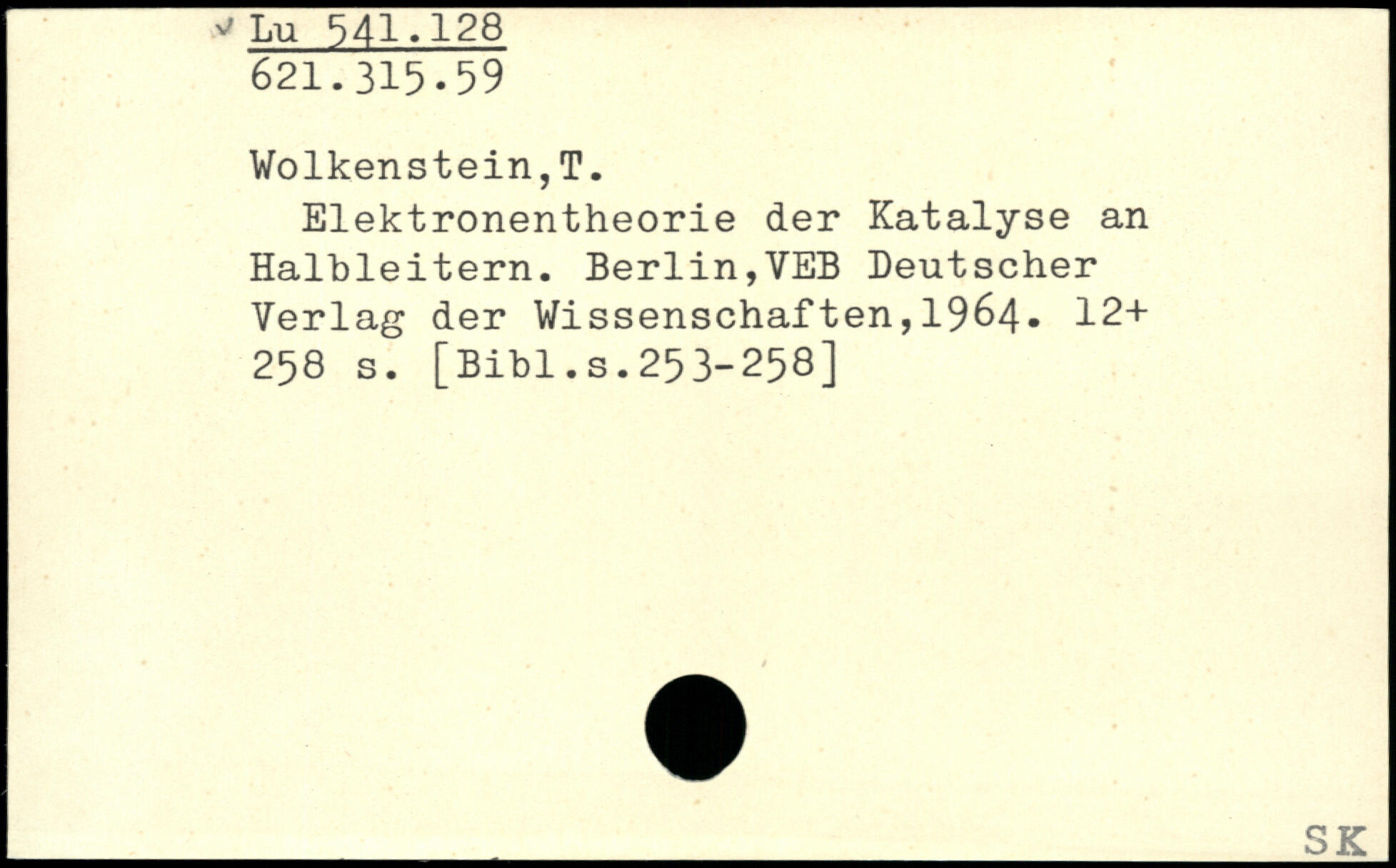 Elektronentheorie der Katalyse an Halbleitern. Berlin,VEB Deutscher Verlag der Wissenschaften,1964. 12+