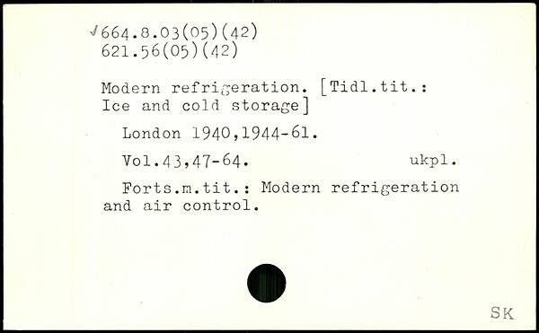 Modem refrigeration. [Tidl.tit.: Ice and cold storage]