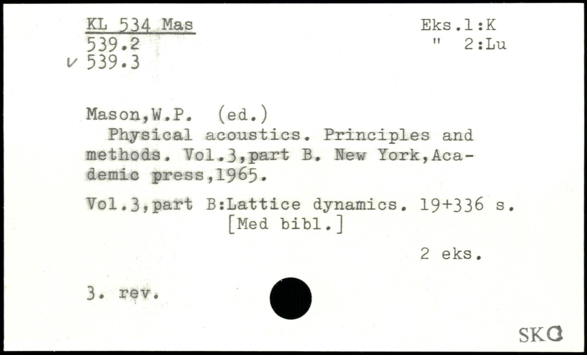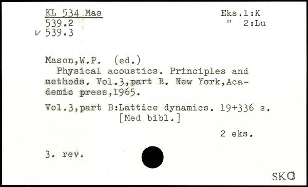 Physical acoustics. Principles and methods. Yol.3,part B.
