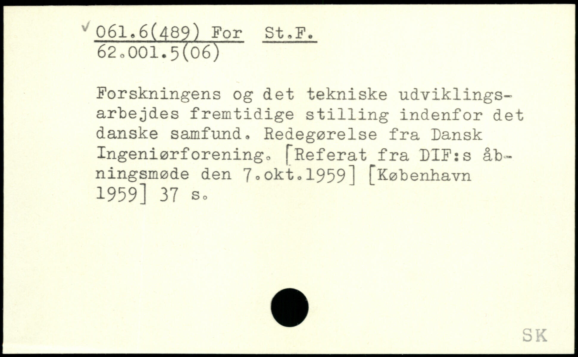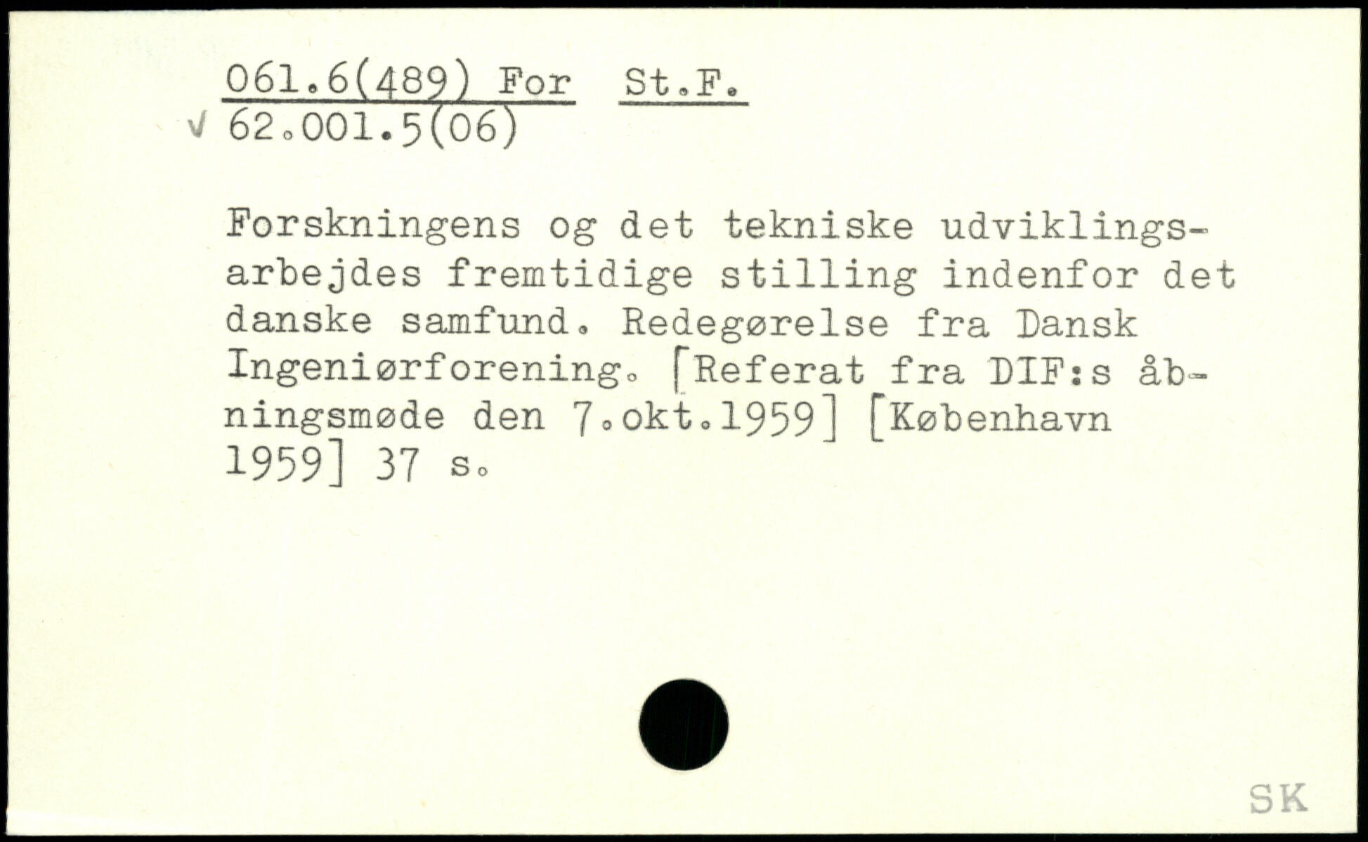 Forskningens og det tekniske udviklingsarbejdes fremtidige st1111ng indenfor det danske samfund. Redegørelse fra Dansk Ingeniørforening.