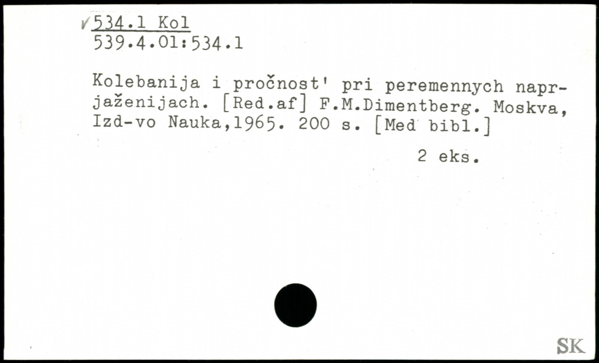 Kolebanija i procnost' pri peremennych napr-jazenijach. [Red.afJ F.M.Dimentberg.