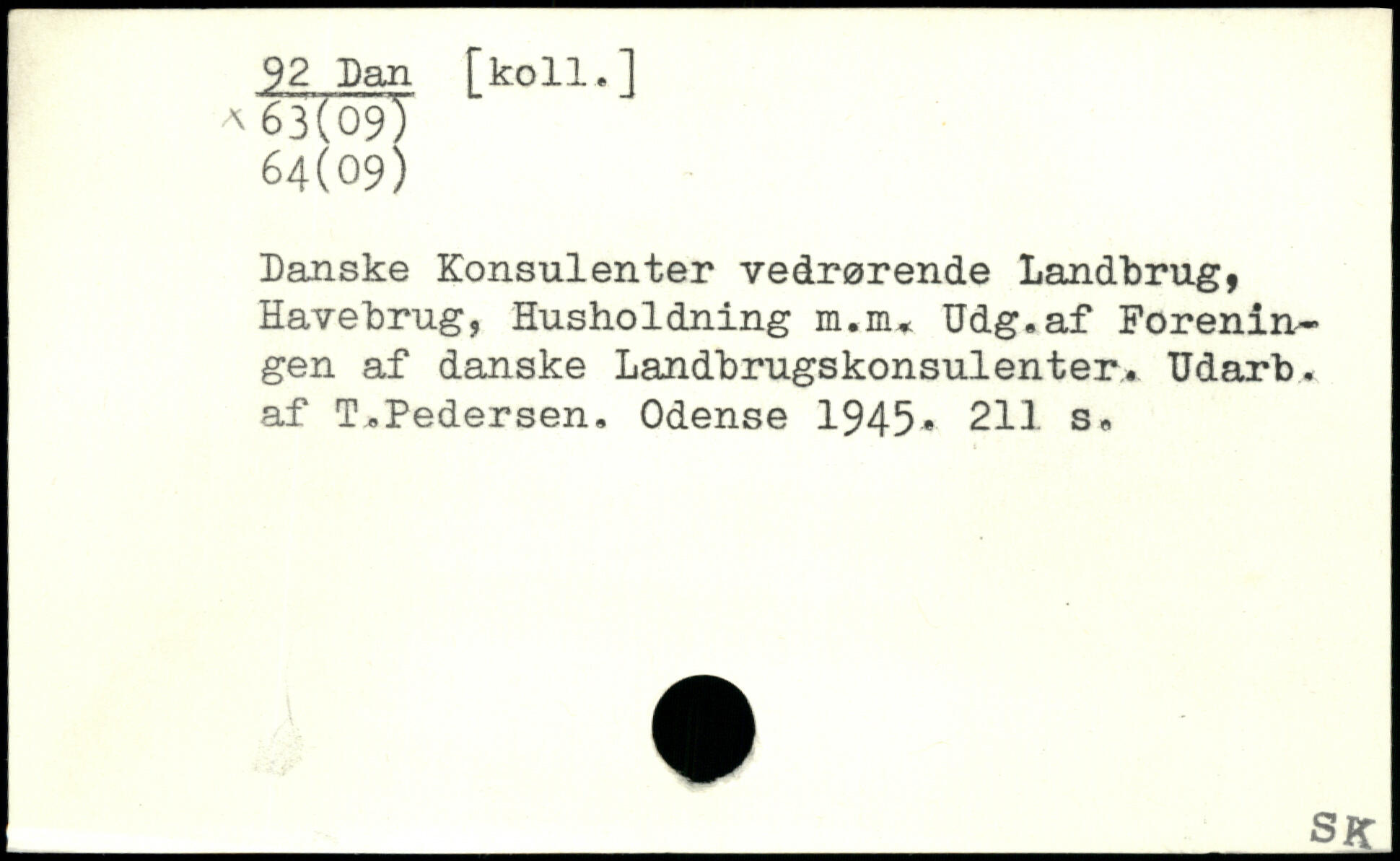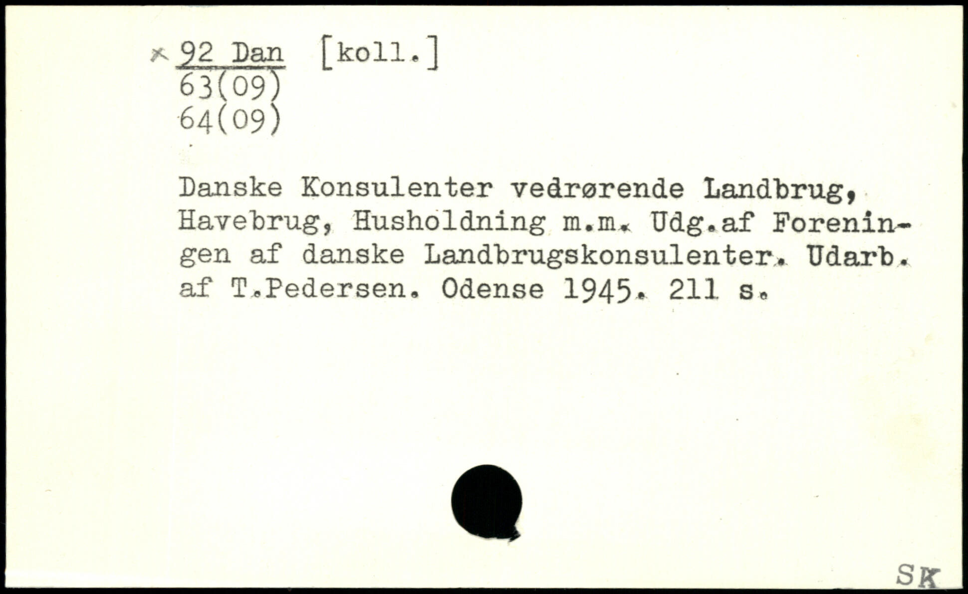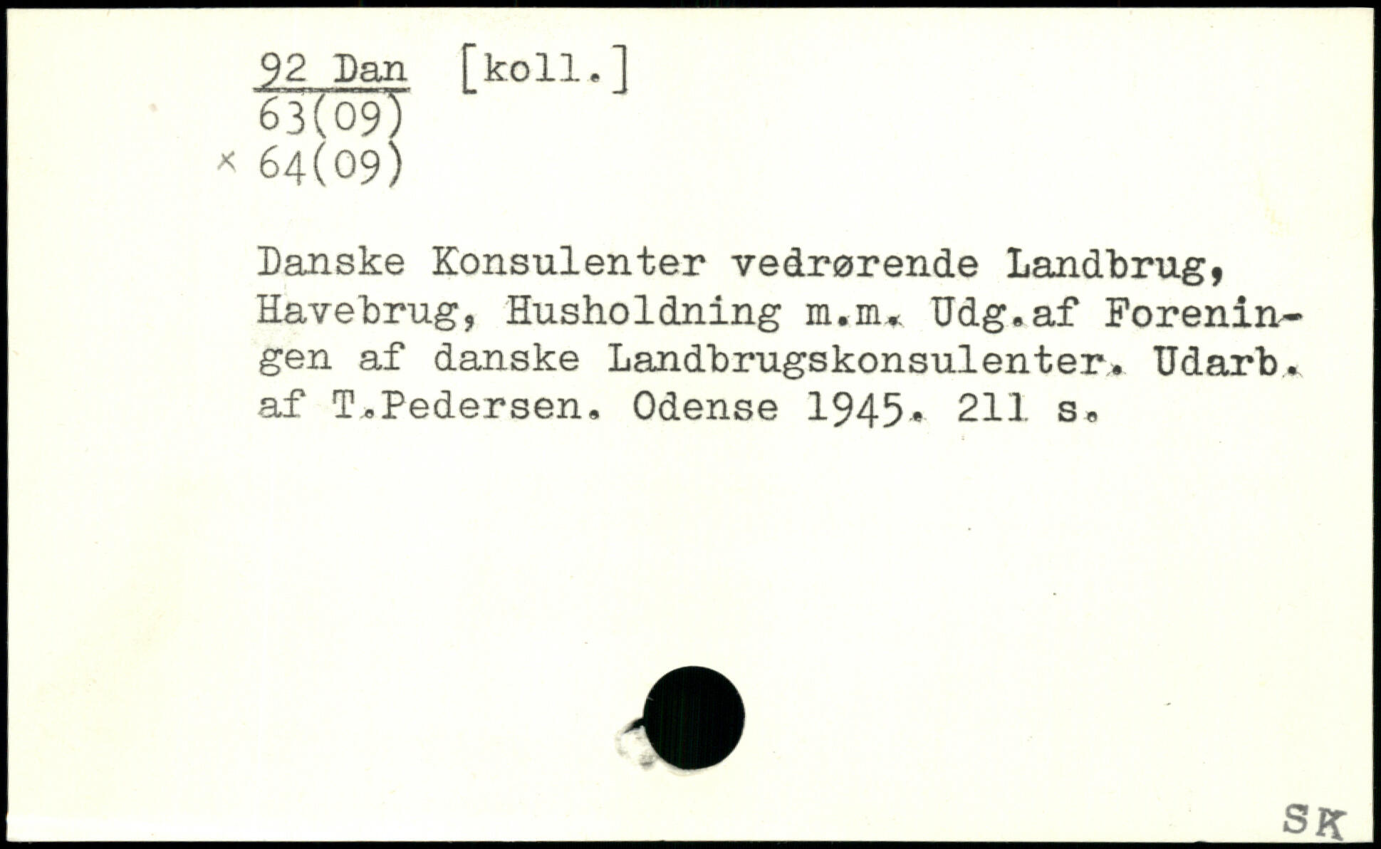 Danske Konsulenter vedrørende Landbrug, Havebrug, Husholdning m.m. Udg.af Foreningen af danske Landbrugskonsulenter. Udarb. af T.Pedersen. Odense 1945