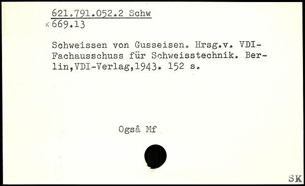 Sohweissen von Gusseisen. Hrsg.v. VD1-Fachausschuss für Schweisstechnik.