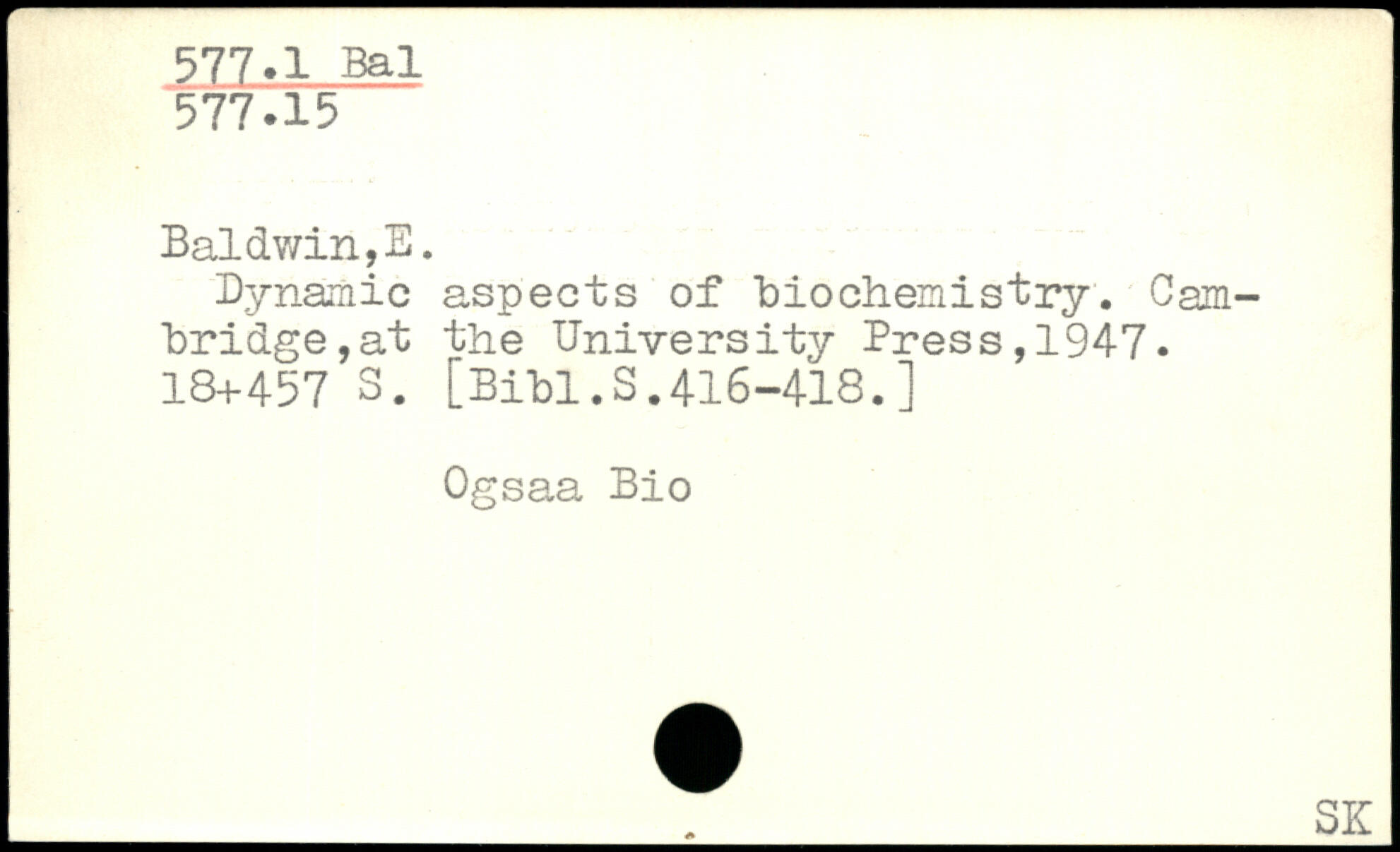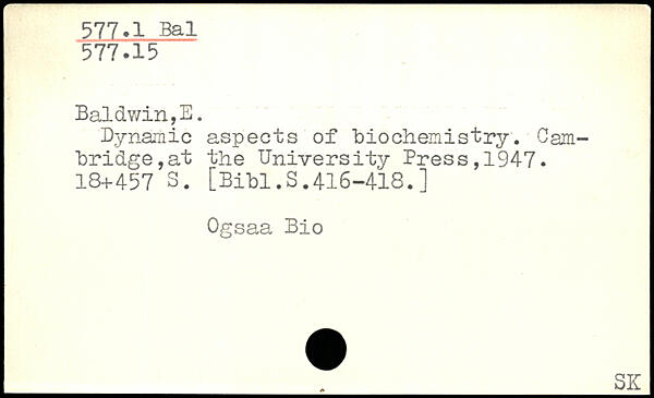 Dynamic aspects of biochemistry. Cambridge, at the University Press,1947.