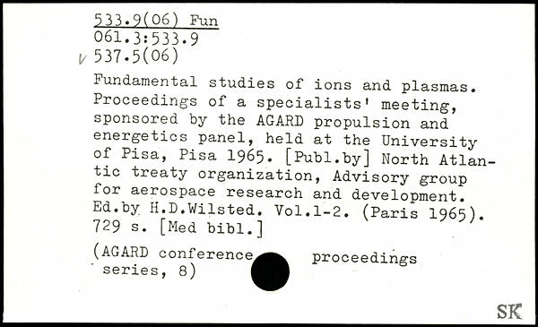 Fundamental studies of ions and plasmas. Proceeding's of a specialistsf meeting, sponsored by the AGARD propulsion and energetics panel, held at the University of Pisa