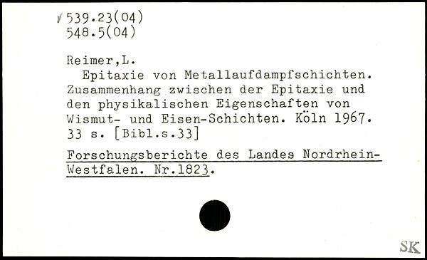 Epitaxie von Metallaufdampfschichten. Zusammenhang zwischen der Epitaxie und den physikalischen Eigenschaften von Wismut- und Eisen-Schichten.