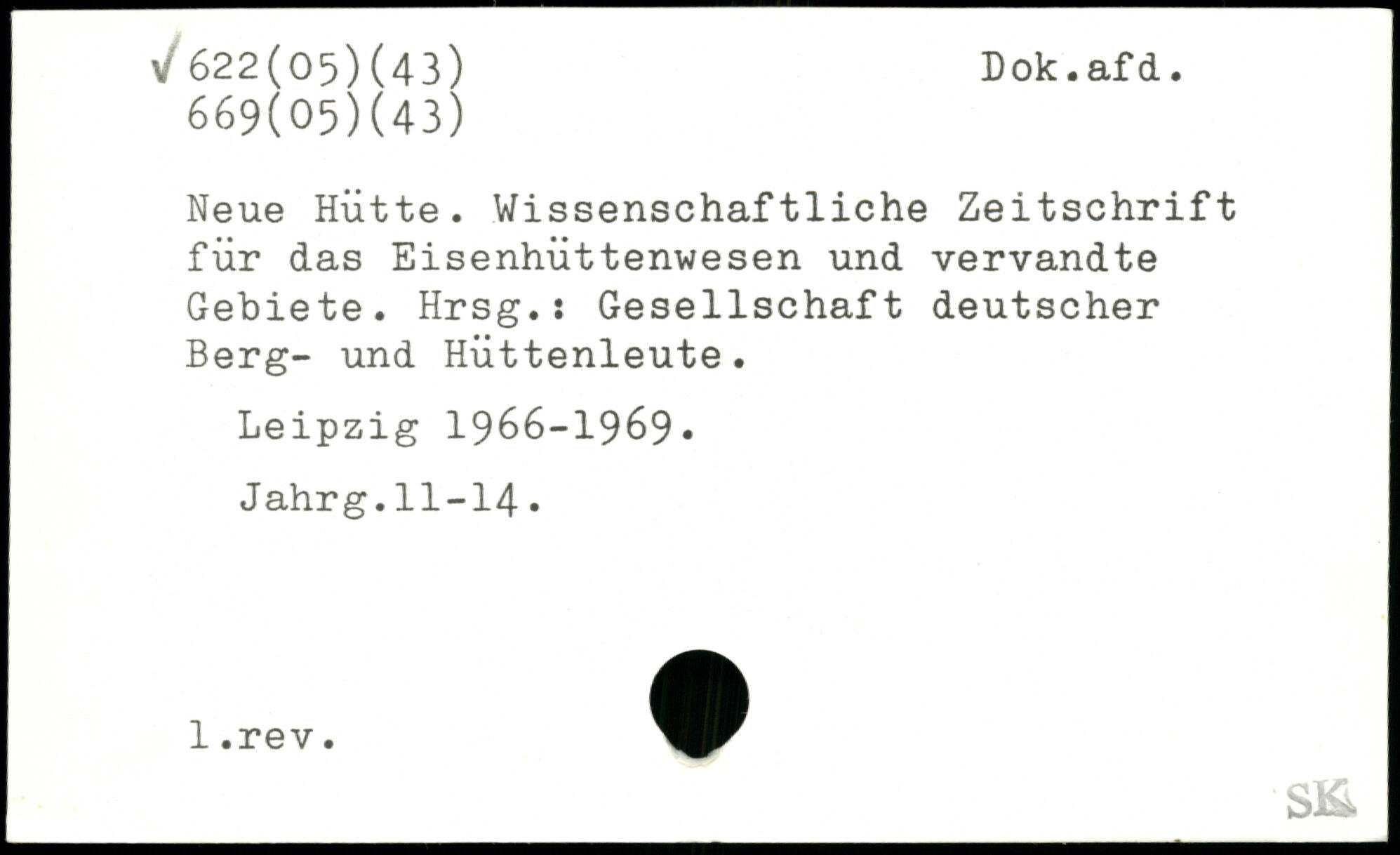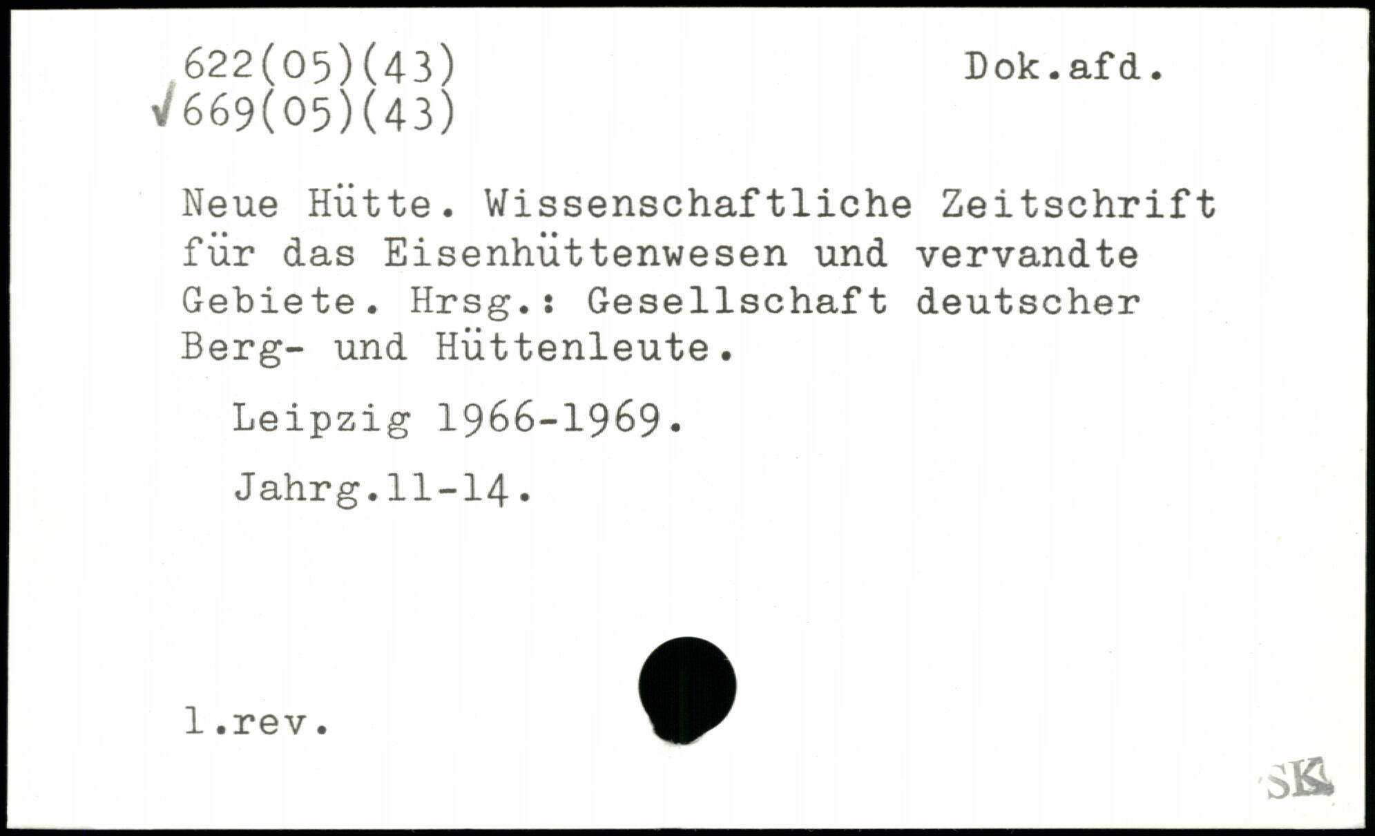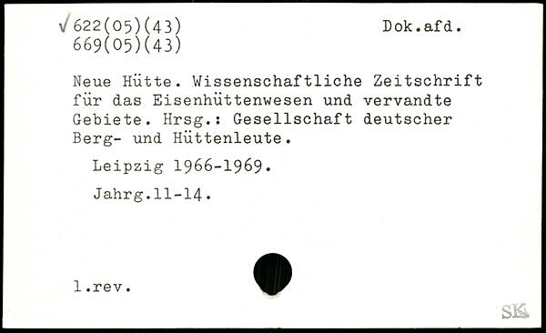Neue Hütte. Wissenschaftliche Zeitschrift für das Eisenhüttenwesen und vervandte Gebiete. Hrsg.: Gesellschaft deutscher Berg- und Hüttenleute.