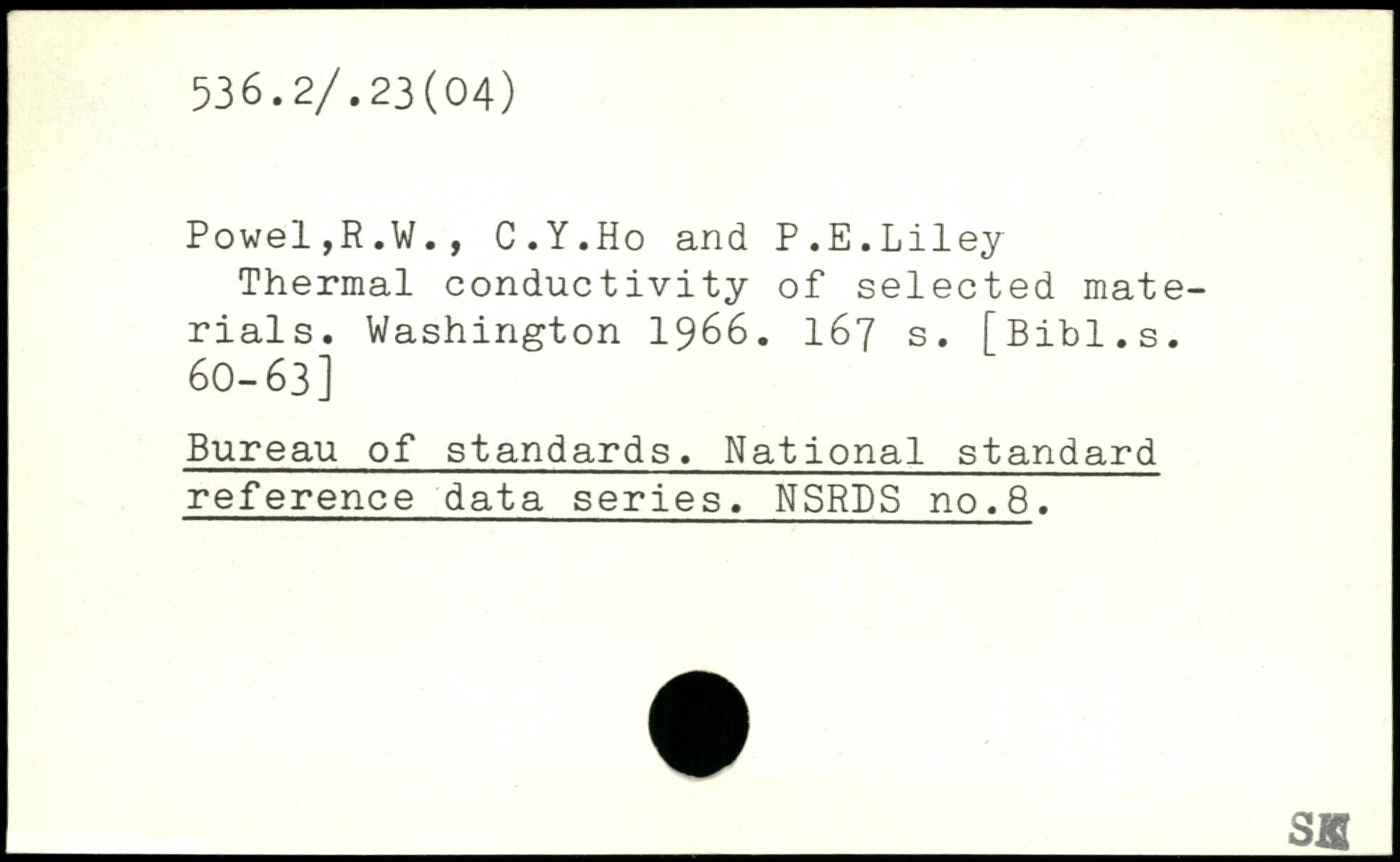 Powel,R.W., C.Y.Ho and P.E.Liley Thermal conductivity of selected materials.