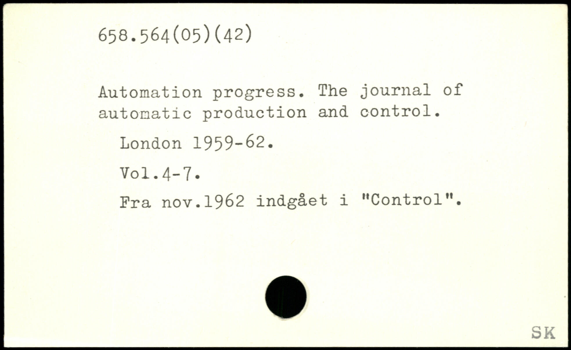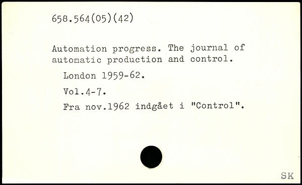 Automation progress. The journal of automatic production and control.