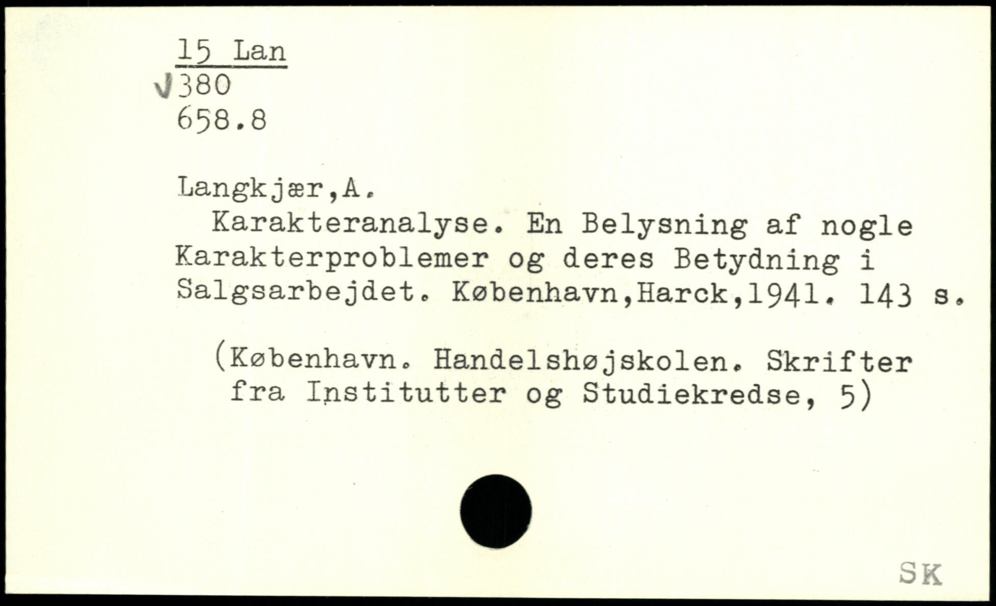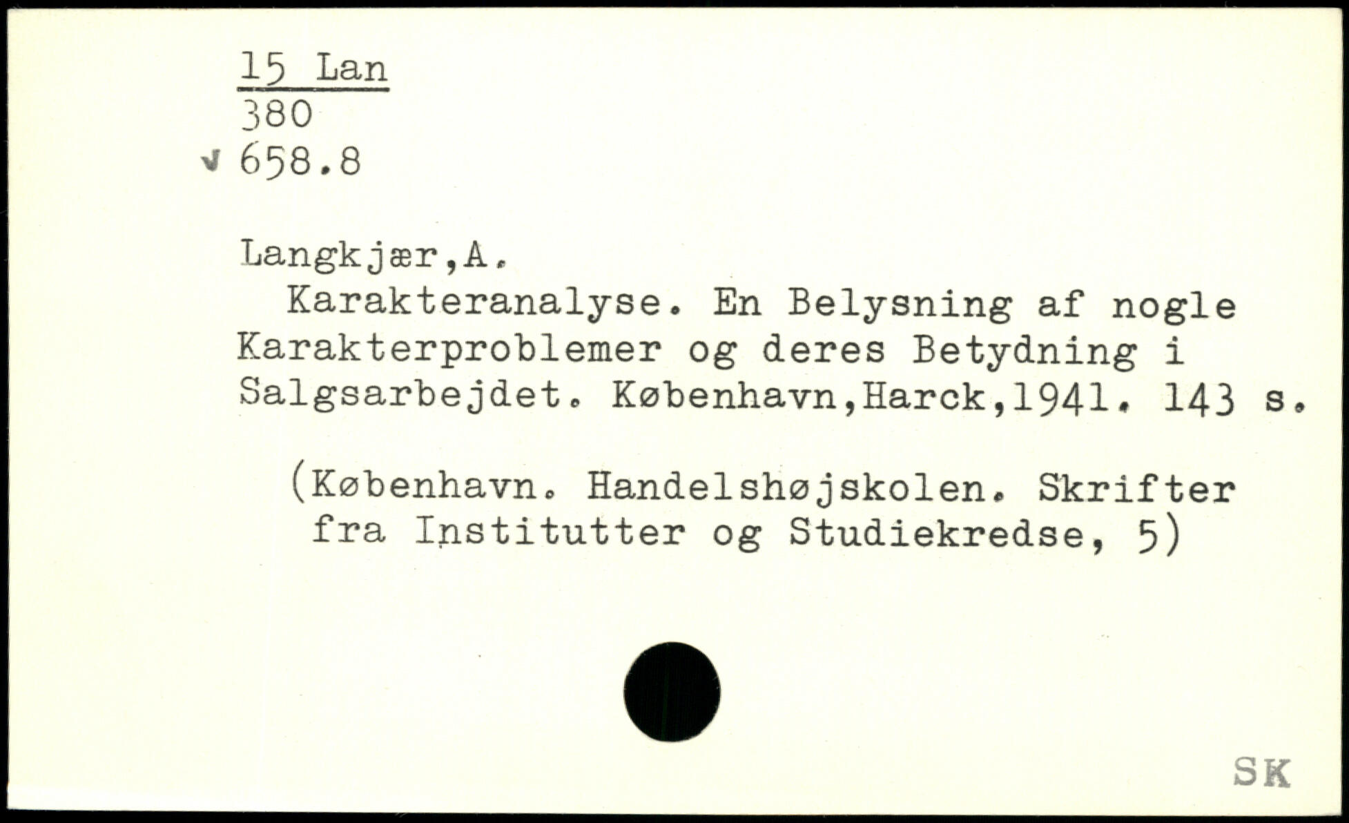 Karakteranalyse. En Belysning af nogle Karakterproblemer og deres Betydning i Salgsarbejdet.