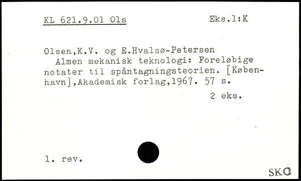 Almen mekanisk teknologi: Foreløbige notater til spåntagningsteorien.