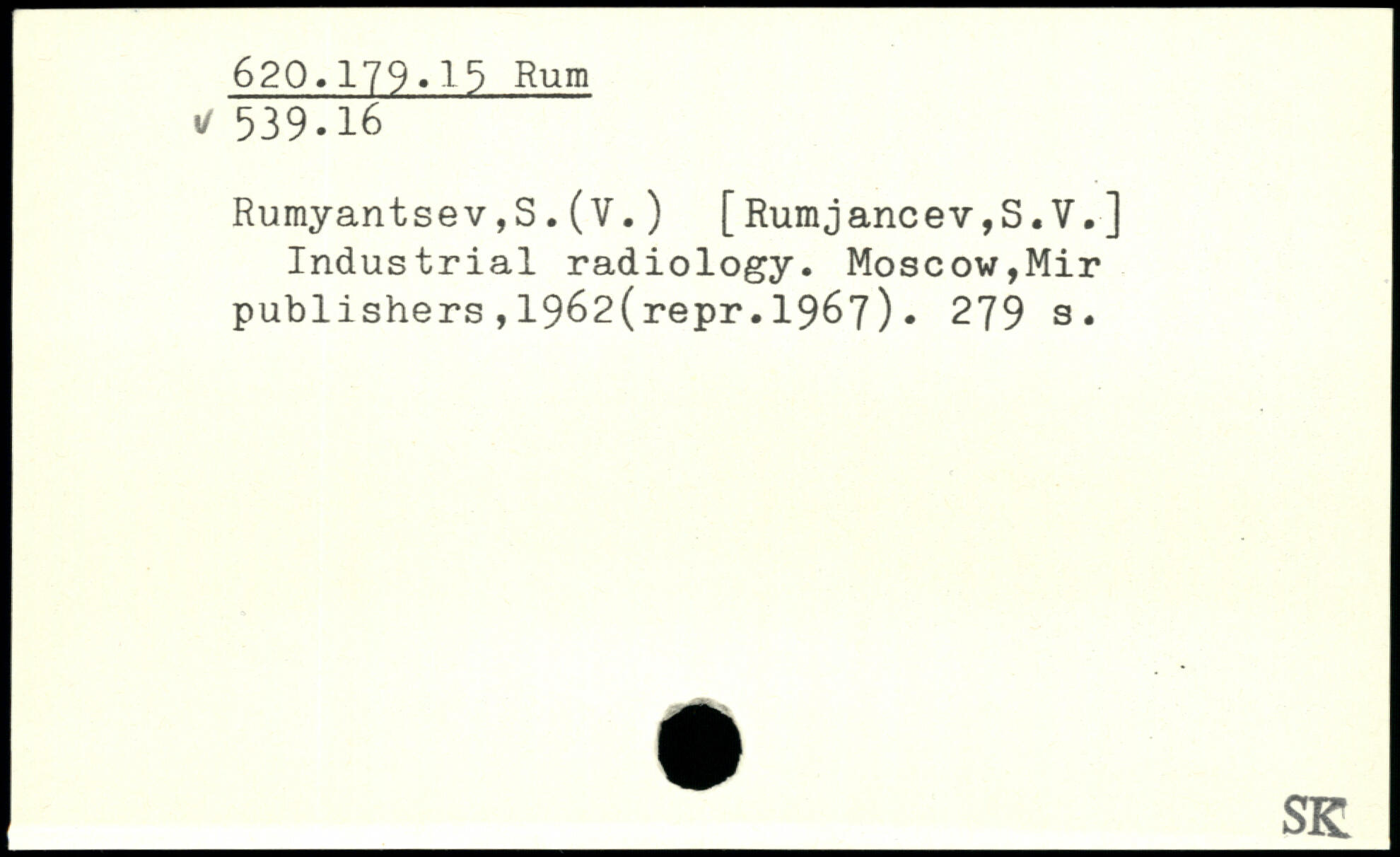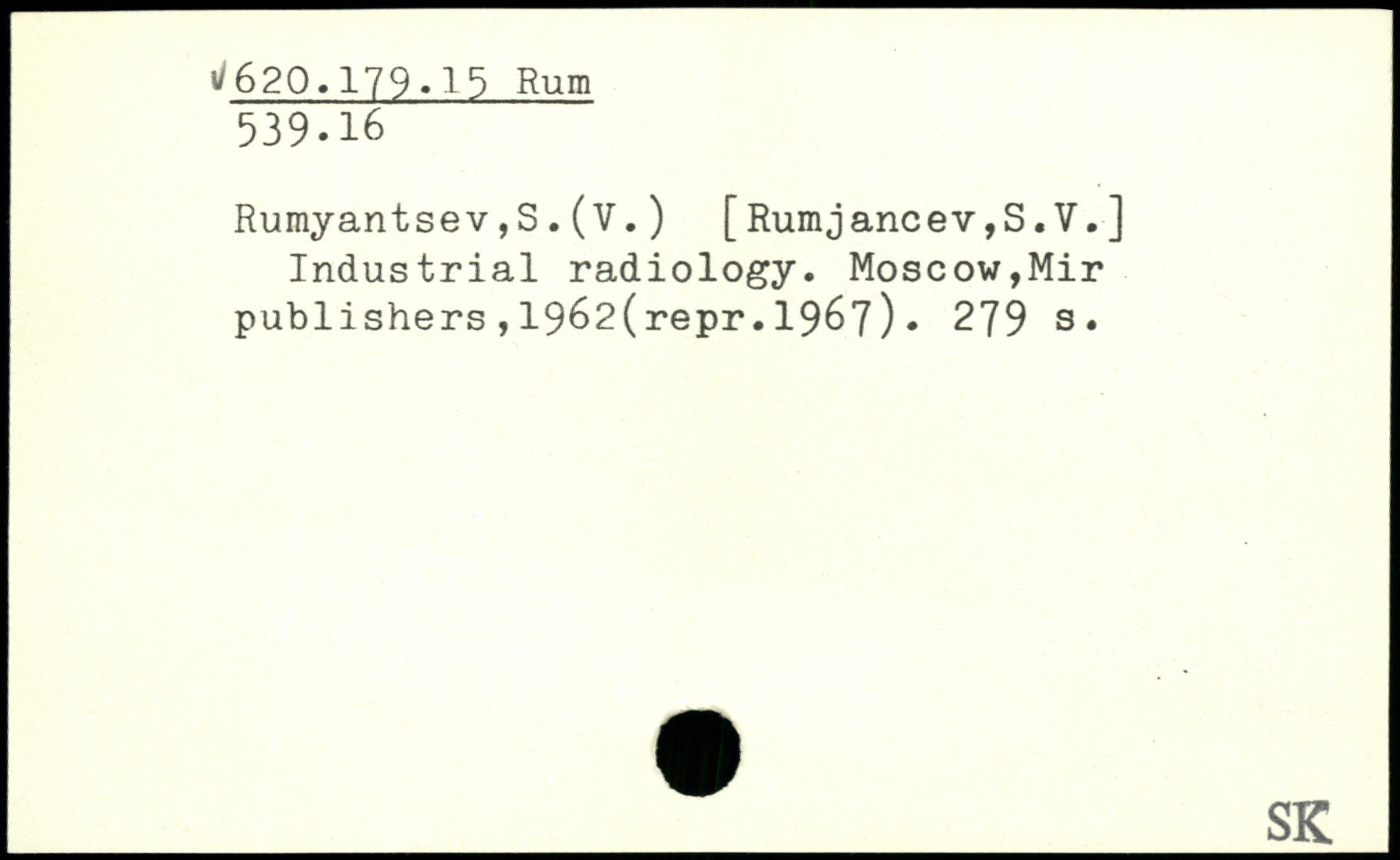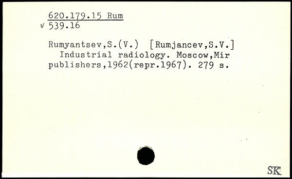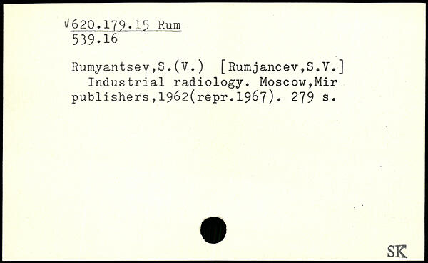 Rumyantsev,S.(V. ) [Rumjancev,S.V.] Industrial radiology.