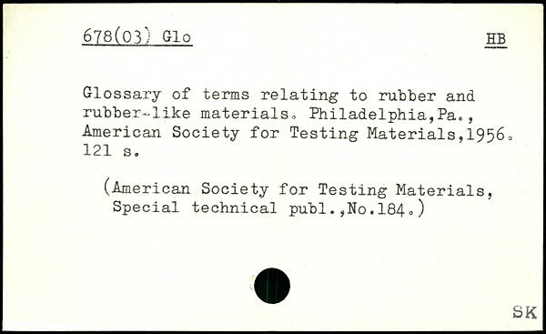 Glossary of terms relating to rubber and rubber-like materials, Philadelphia,Pa., American Society for Testing Materials,1956