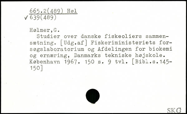 Studier over danske fiskeoliers sammensætning. [Udg.af] Fiskeriministeriets forsøgslaboratorium og Afdelingen for biokemi og ernæring, Danmarks tekniske højskole.