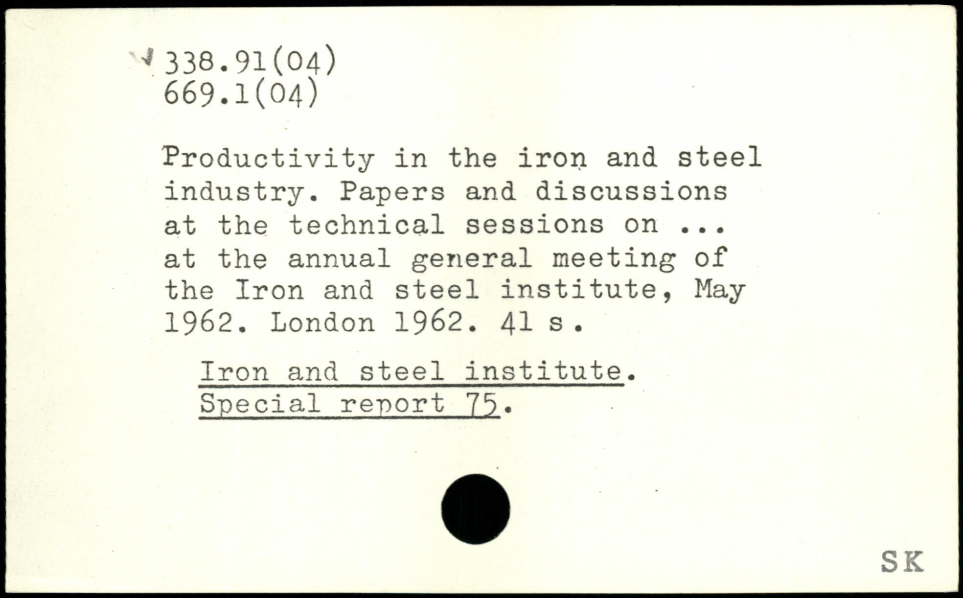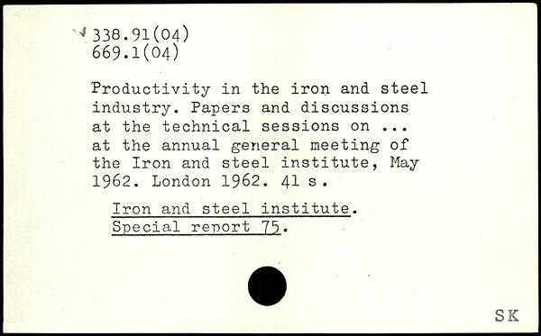 Productivity in the iron and steel industry. Papers and discussions at the technical sessions on ... at the annual general meeting of the Iron and steel institute, May 1962.