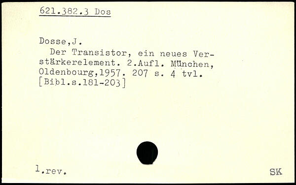 Der Transistor, ein neues Ver-stârkerelement.